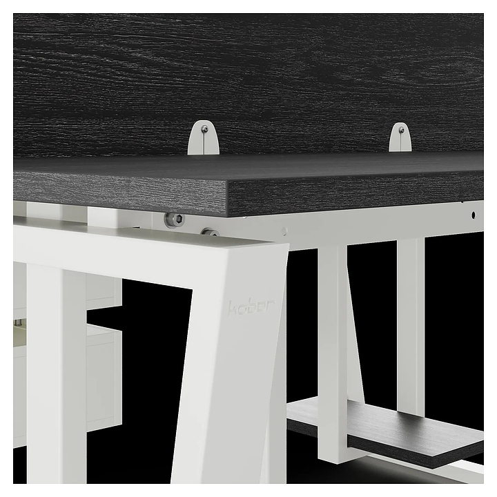 Офисный стол Кобор OTR/2-120/120 white/glazed на 2 рабочих места используется в офисных помещениях и кабинетах руководителей. Модель оснащена опорами в форме обратной трапеции. Каркас и опоры выполнены из металла, выкрашенного в цвет белый муар (RAL9016), столешница – из ламинированной древесно-стружечной плиты (ЛДСП) цвета черный дуб (H3178 ST37). Дополнительные характеристики: