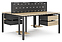 Офисный стол Кобор P/2-140/160 black/natural на 2 рабочих места используется в офисных помещениях и кабинетах руководителей. Модель оснащена П-образными опорами. Каркас и опоры выполнены из металла, выкрашенного в цвет черный муар (RAL9005), столешница – из ламинированной древесно-стружечной плиты (ЛДСП) цвета натуральный дуб (H1180 ST37). Дополнительные характеристики: