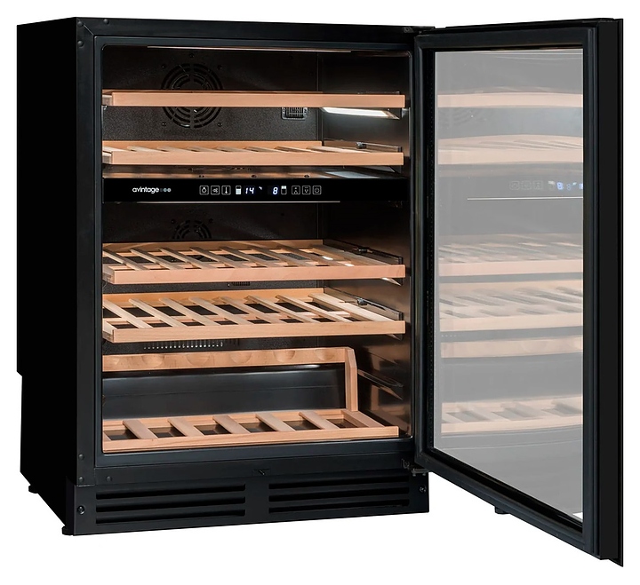 Винный шкаф Climadiff Avintage AVU51D82 предназначен для хранения при оптимальных условиях и демонстрации бутилированного вина различных сортов в барах, ресторанах, специализированных магазинах, складских помещениях, гостиницах, а также домашних условиях. Модель оснащена холодильной камерой с 2 независимыми температурными зонами, правосторонней перенавешиваемой распашной дверью на скрытых петлях, обзорным остеклением, кабелем питания с вилкой, расположенной внутри камеры панелью управления с сенсорными клавишами и светодиодным цифровым дисплеем с белой подсветкой индикации. Корпус и рукоятка выполнены из металла с антикоррозийным покрытием черного цвета, внутренняя облицовка камеры черного цвета, полки – из массива буковой древесины. В комплект поставки входят 5 съемных полок с направляющими для размещения бутылок: 4 выдвижные и 1 стационарная, крепеж для рукоятки, инструкция по эксплуатации, гарантийный талон и заводская упаковка. Особенности: