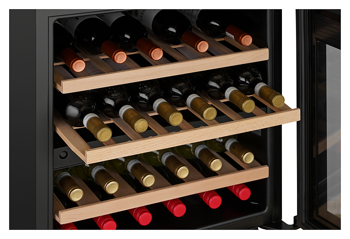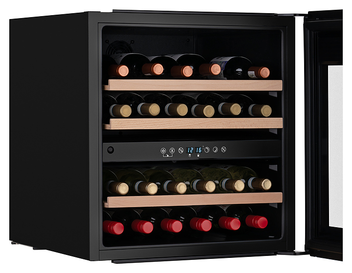 Винный шкаф Weissgauff WWCI-36 DB DualZone предназначен для хранения при оптимальных условиях и демонстрации бутилированного вина различных сортов в барах, ресторанах, специализированных магазинах, складских помещениях, а также домашних условиях. Модель оснащена холодильной камерой с 2 независимыми температурными зонами, правосторонней распашной дверью на скрытых петлях, обзорным остеклением, кабелем питания с вилкой, расположенной внутри камеры панелью управления с сенсорными клавишами и светодиодным цифровым дисплеем с голубой подсветкой индикации. Корпус выполнен из металла с антикоррозийным покрытием черного цвета, внутренняя облицовка камеры черного цвета, фронт двери – из закаленного стекла с дымчатой тонировкой, полки – из массива древесины светлых пород. В комплект поставки входят 3 съемные полки с направляющими для размещения бутылок, набор крепежа, инструкция по эксплуатации, гарантийный талон и заводская упаковка. Особенности: