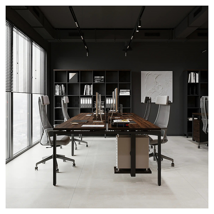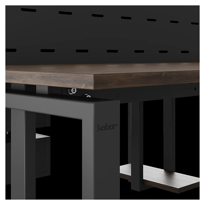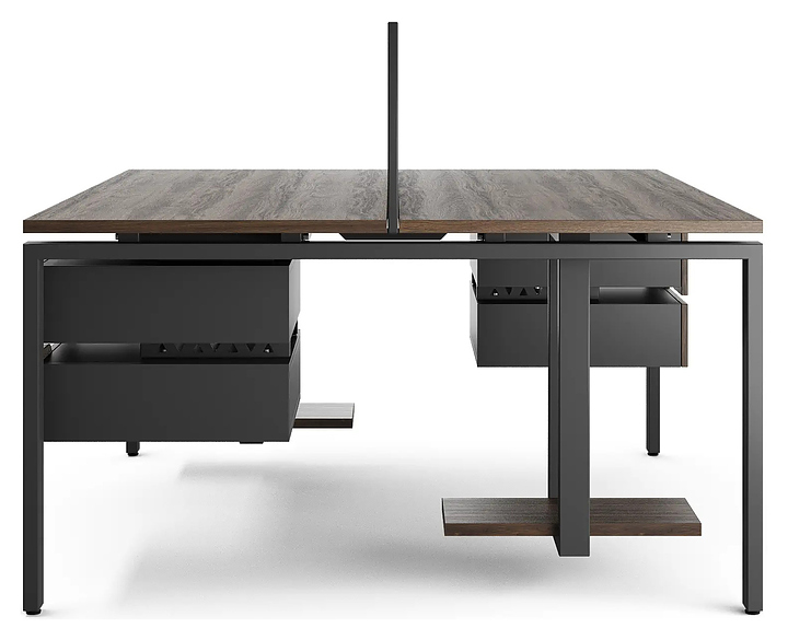 Офисный стол Кобор P/2-140/140 black/charlston на 2 рабочих места используется в офисных помещениях и кабинетах руководителей. Модель оснащена П-образными опорами. Каркас и опоры выполнены из металла, выкрашенного в цвет черный муар (RAL9005), столешница – из ламинированной древесно-стружечной плиты (ЛДСП) цвета дуб чарльстон (H3154 ST36). Дополнительные характеристики: