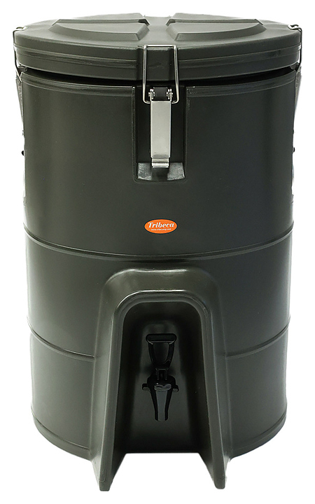 Термоконтейнер Tribeca 33 л используется службами доставки предприятий общественного питания и пищевой промышленности, а также в быту, во время туристических походов, пикника, рыбалки или дорожных путешествий для хранения и транспортировки холодных и горячих напитков в в автономных изотермических условиях. Модель оснащена краном для розлива и съемной плотно прилегающей крышкой. Корпус цилиндрической формы выполнен из высококачественного полиэтилена низкой плотности (LLDPE) цвета хаки, застежки – из нержавеющей стали, термоизоляция – из экологичного пенополиуретана высокой плотности. Особенности: