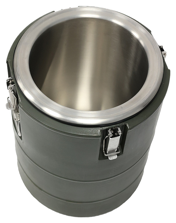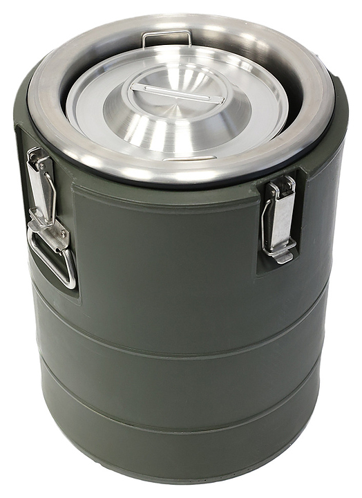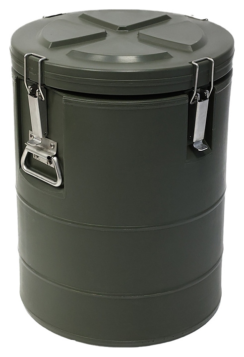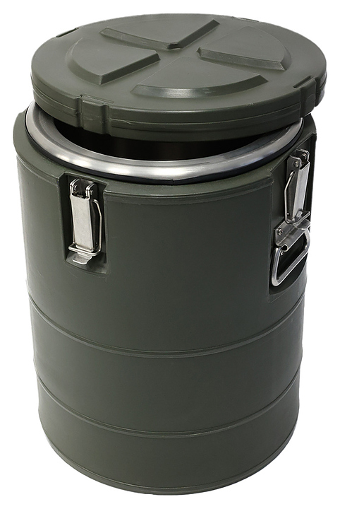 Термоконтейнер Tribeca 33 л используется службами доставки предприятий общественного питания и пищевой промышленности, а также в быту, во время туристических походов, пикника, рыбалки или дорожных путешествий для хранения и транспортировки холодных и горячих пищевых продуктов в в автономных изотермических условиях. Модель оснащена краном для розлива и съемной плотно прилегающей крышкой. Корпус цилиндрической формы выполнен из высококачественного полиэтилена низкой плотности (LLDPE) цвета хаки, застежки – из нержавеющей стали, термоизоляция – из экологичного пенополиуретана высокой плотности. Особенности: