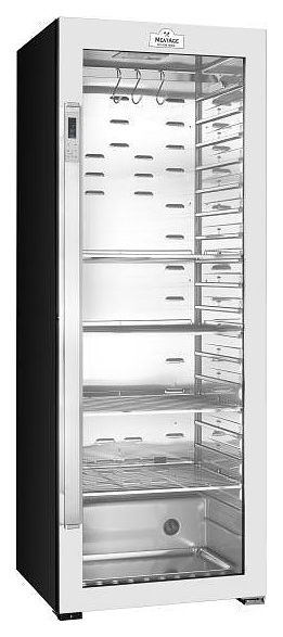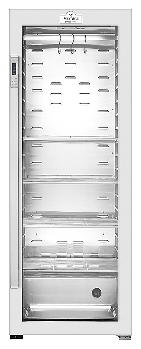 Шкаф для мяса MeatAge VI180 WT предназначен для вызревания мяса, ветчины и салями при оптимальных условиях на предприятиях пищевой промышленности, общественного питания и торговли, а также в домашних условиях. Модель оснащена камерой с распашной дверью. Корпус выполнен из окрашенного металла, внутренние боковые стенки – из АБС-пластика, задняя стенка, полки и комплектующие – из нержавеющей стали, дверь – из ударопрочного закаленного стекла. Комплектация: