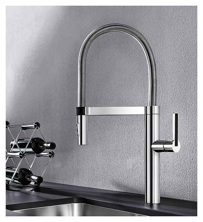 Кухонный смеситель Blanco Culina-S впечатляет изысканностью и необычностью дизайна. Он прекрасно сочетается с современными мойками из нержавеющей стали, позволяя обеспечить максимальную функциональность рабочей зоны на кухне. Пружина из нержавеющей стали и возможность вращения на 360° обеспечивают изливу полную свободу движения. Шланг удобно фиксируется с помощью магнитного держателя. Излив работает в двух режимах: струя и душ. Запатентованный рассекатель позволяет уменьшить образование налета от воды. Дополнительные характеристики:
