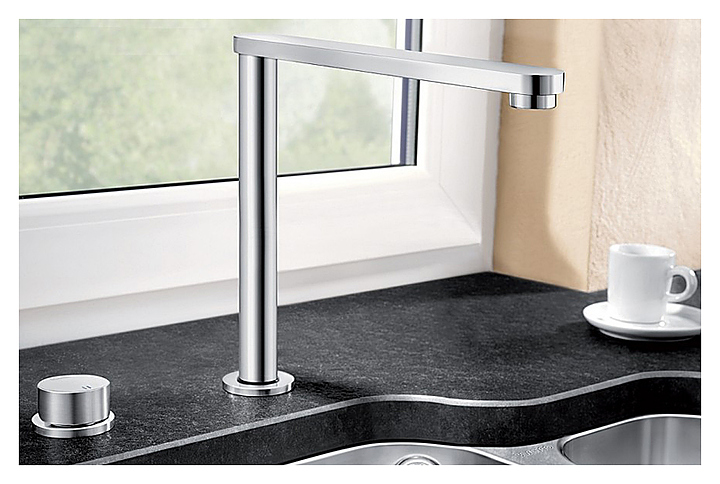 Элегантный смеситель Blanco Eloscope-F II, выполненный в современном прямолинейном дизайне, специально разработан для установки перед окном. Минимальное расстояние до окна всего 3 см. Смеситель идеально сочетается с мойками из нержавеющей стали с зеркальной полировкой поверхности, отлично вписываясь в интерьер современных кухонь. Несложная установка занимает мало времени и может быть выполнена в столешницу. Высота излива регулируется, при этом в любом положении смеситель сохраняет свою работоспособность. В комбинации с мойками серии STATURA при установке на специальную площадку под смеситель он опускается ниже уровня столешницы. Особенности: