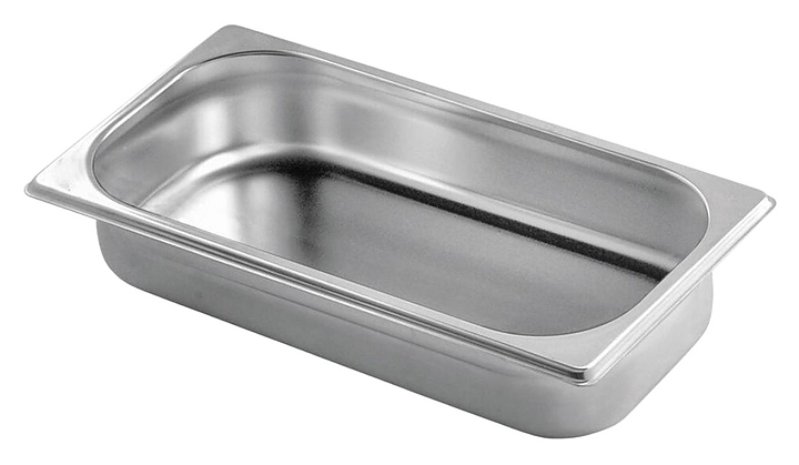 Гастроемкость P.L. Proff Cuisine Econorm Gastro P.L. GN1/3-40 используется на предприятиях общественного питания и торговли для приготовления, демонстрации, кратковременного хранения и транспортировки различных пищевых продуктов и блюд. Модель оснащена усиленными ребрами жесткости бортами с выступающей кромкой. Изделие выполнено из нержавеющей стали с серебристой поверхностью. Особенности: