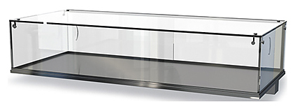 Нейтральная витрина КАМИК 1500х650х300(400) используется на предприятиях общественного питания и торговли для демонстрации и хранения закусок, кондитерских изделий или вторых блюд, не требующих определенного температурного режима. Модель оснащена холодной подсветкой и бескаркасной конструкцией, позволяющей встраивать оборудование в любые поверхности. Витрина выполнена из пищевой нержавеющей стали AISI 430 и каленого стекла. Дополнительные характеристики: