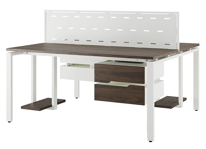 Офисный стол Кобор P/2-140/140 white/charlston используется в офисных помещениях и кабинетах руководителей. Модель оснащена П-образными опорами. Каркас выполнен из металла, выкрашенного в цвет белый муар (RAL9016) , столешница – из ламинированной древесно-стружечной плиты (ЛДСП) цвета дуб чарльстон (H3154 ST36). Дополнительные характеристики: