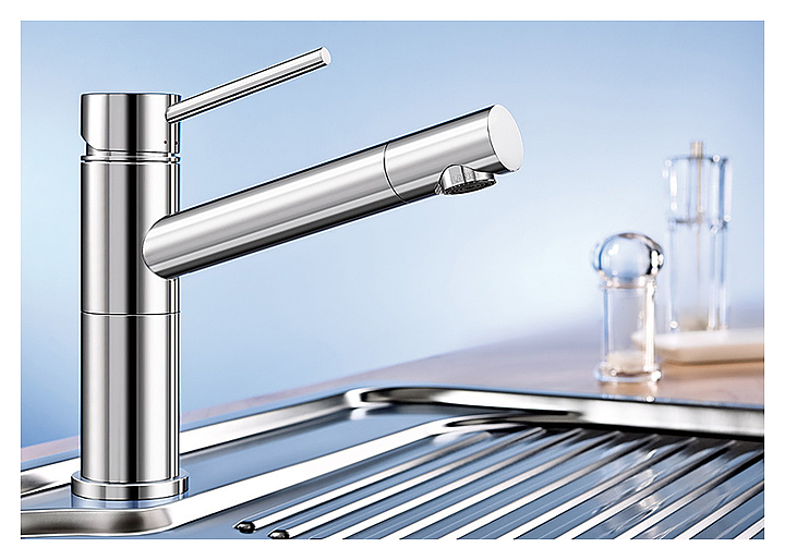 Смеситель Blanco Alta изысканного дизайна – отличный выбор для современной кухни. Однорычажный смеситель прекрасно гармонирует с мойками, выполненными из нержавеющей стали. Высокий излив позволяет легко наполнять вместительные кастрюли. Излив вращается на 360 градусов, а также поворачивается и передняя часть излива, облегчая наполнения бутылок и ваз. Особая конструкция рассекателя уменьшает количество брызг. Особенности: