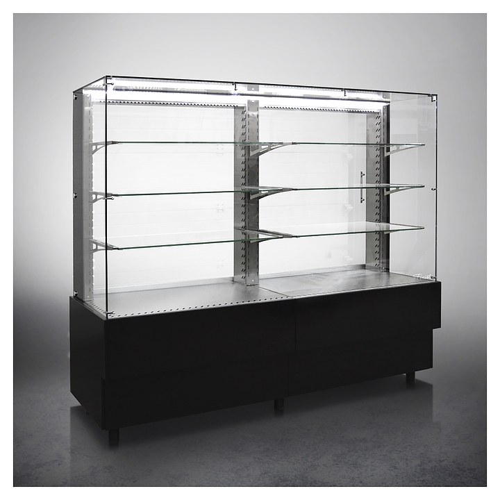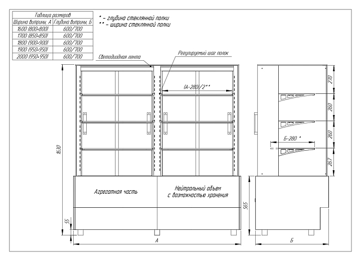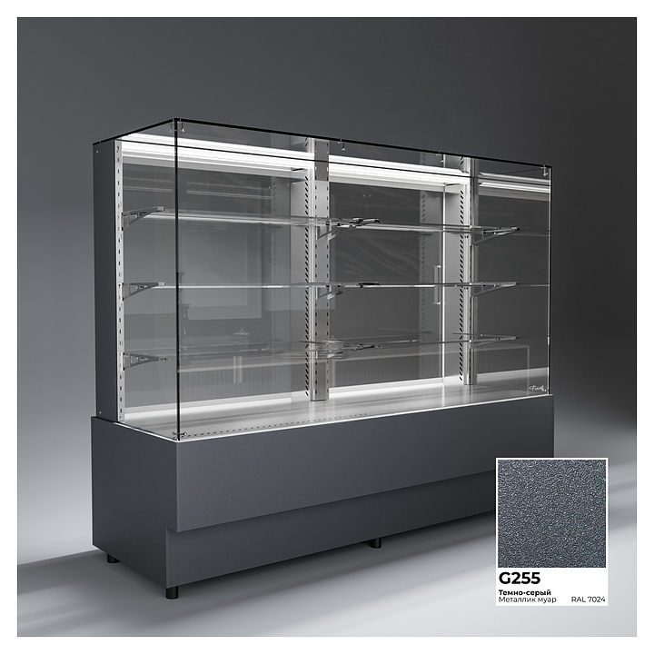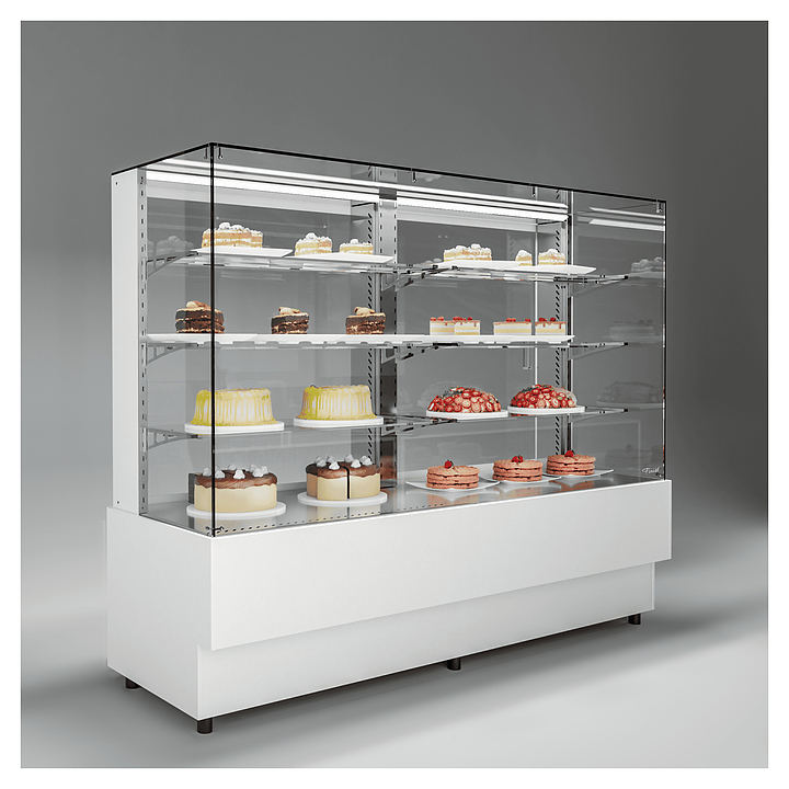 Напольная холодильная витрина Finist AIR DOUBLE AD-200-6-163 среднетемпературная предназначена для экспозиции и временного хранения кондитерских изделий. Доступ к продукции осуществляется с помощью раздвижных дверей купе. Конструкция позволяет размещать продукцию на трех стеклянных полках и дне витрины. В стандартном оснащении комплектуется боковыми стеклами и фасадами, которые имеют съемную конструкцию. Корпус изготовлен из крашеной стали. Среднетемпературная напольная холодильная витрина AIR изготавливается по размерам заказчика. Фасады могут быть окрашены в любой цвет по каталогу RAL или обшиты МДФ. Особенности: