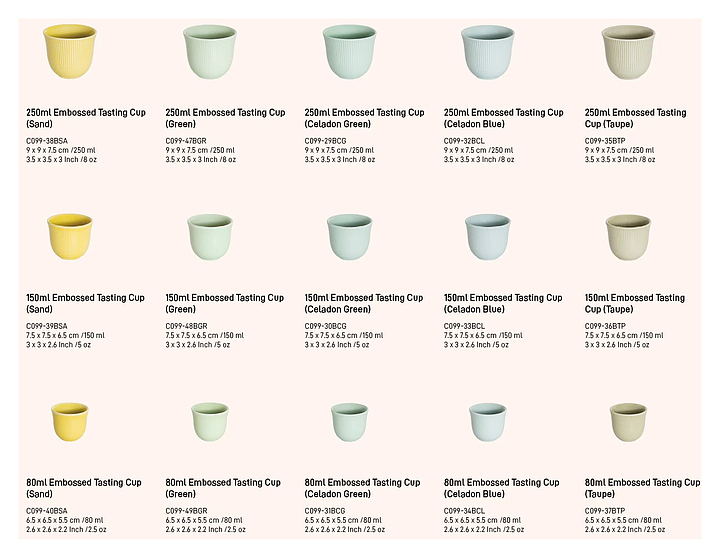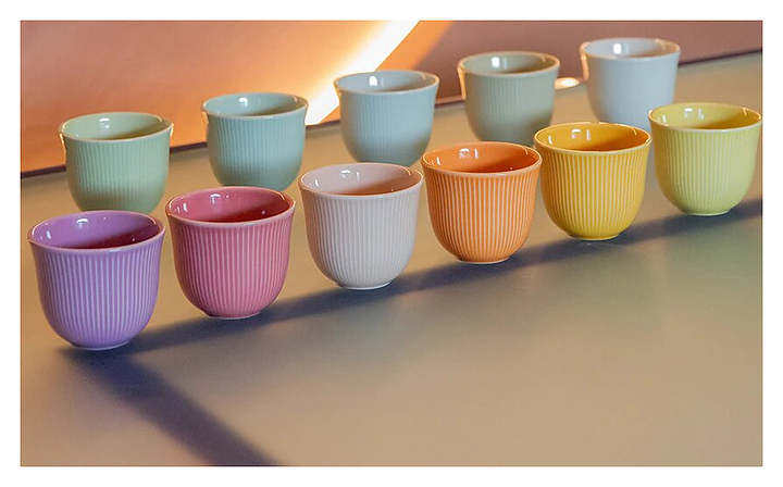 Чашка Loveramics Brewers Embossed Tasting Cup Espresso C099-31BCG 80 мл для кофе, подходит для эспрессо. Это новая серия рельефных термостойких чашек из фарфора создана для тех, кто любит яркие цвета и хороший кофе. Ее компактный объем (80 мл) идеально подходит для дегустации кофе, позволяя сосредоточиться на тонкостях вкуса и аромата. Отсутствие ручки придаёт эстетическую изысканность и способствует более тесному контакту с напитком. Доступны в разных размерах: для эспрессо 80 мл, флет-уайт на 150 мл, латте/капучино на 250 мл. Изготовлена из прочного и долговечного фарфора, поверхность которого вручную покрывается глазурью, что придает каждому предмету индивидуальность. Особенности: