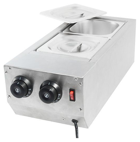 Подогреватель Rosso HW-22 используется на предприятиях общественного питания и торговли для темперирования и поддержания в горячем виде шоколада. Модель оснащена 2 емкостями для работы с различными видами шоколада одновременно и 2 термостами независимой регулировки температуры. Корпус выполнен из нержавеющей стали. В комплект поставки входят 2 GN 1/6 глубиной 100 мм с крышками. Внимание! Информация о товарах, размещенная на сайте, не является публичной офертой, определяемой положениями Части 2 Статьи 437 Гражданского кодекса Российской Федерации. Производители вправе вносить изменения в технические характеристики, внешний вид и комплектацию товаров без предварительного уведомления. Уточняйте характеристики у наших менеджеров перед оформлением заказа. |