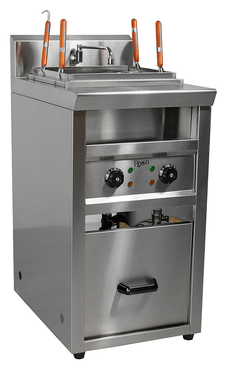 Макароноварка Rosso HEN-4HX используется на предприятиях общественного питания и торговли для варки пельменей, вареников, макаронных изделий, кукурузы, фрикаделек, овощей, крeвeток и многих дpугих продуктoв. Заполнение аппарата водой производится вручную. Внутри аппарат разделен на секции, что предотвращает смешивание вкусов во время приготовления блюд. Корпус выполнен из нержавеющей стали. В комплект поставки входят 4 корзины с деревянными ручками. Видео