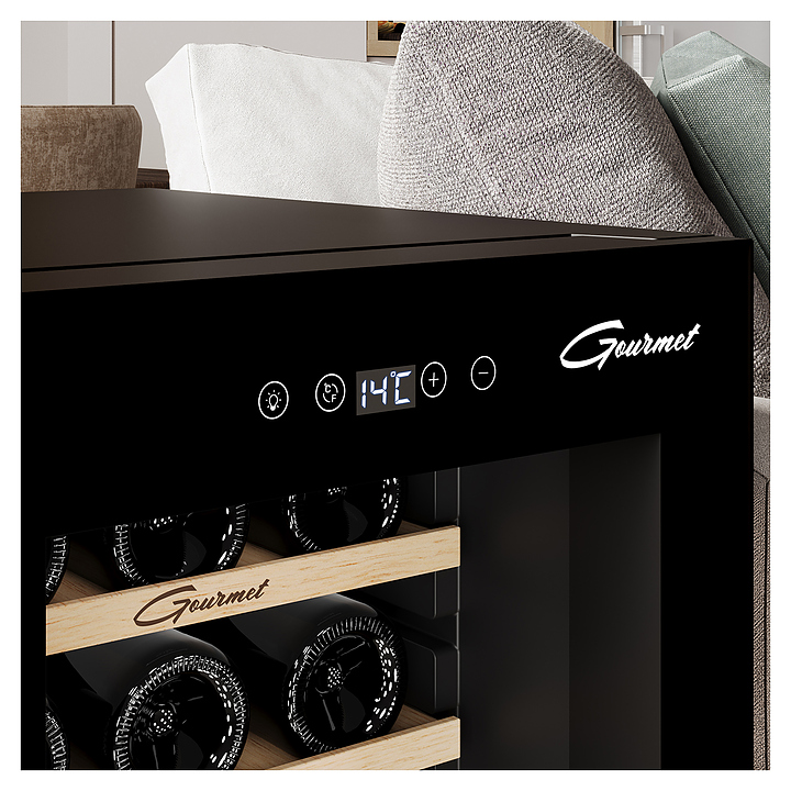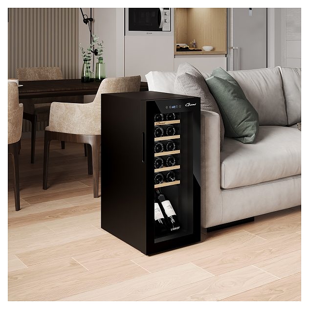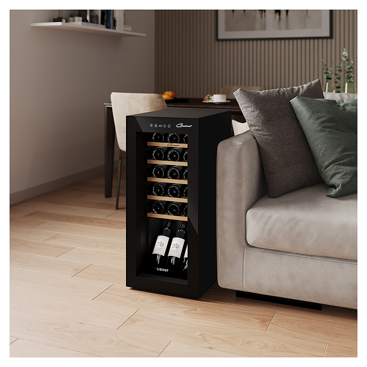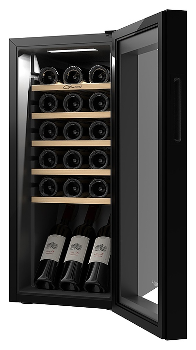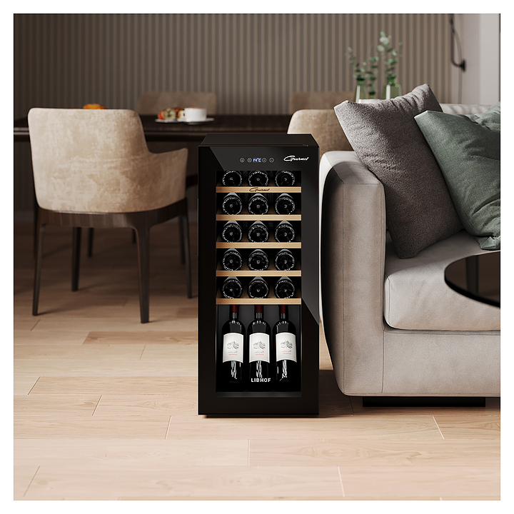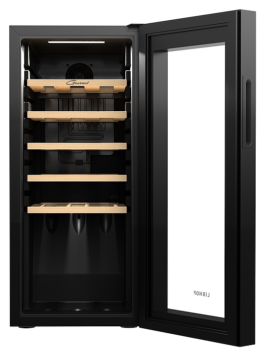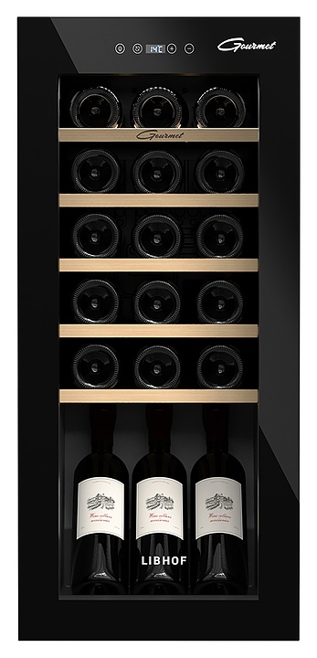 Винный шкаф Libhof Gourmet GM-18 black предназначен для хранения при оптимальных условиях и демонстрации бутилированного вина различных сортов в барах, ресторанах, специализированных магазинах, подсобных складских помещениях, а также в домашних условиях. Модель оснащена монотемпературной холодильной камерой, правосторонней распашной дверью, прозрачным обзорным остеклением и внешней сенсорной панелью управления с цифровым дисплеем индикации. Корпус выполнен из металла с антикоррозийным покрытием черного цвета и полным остеклением фронта, полки – из массива буковой древесины. В комплект поставки входят 5 полок с направляющими для размещения бутылок, инструкция по эксплуатации и гарантийный талон. Особенности: