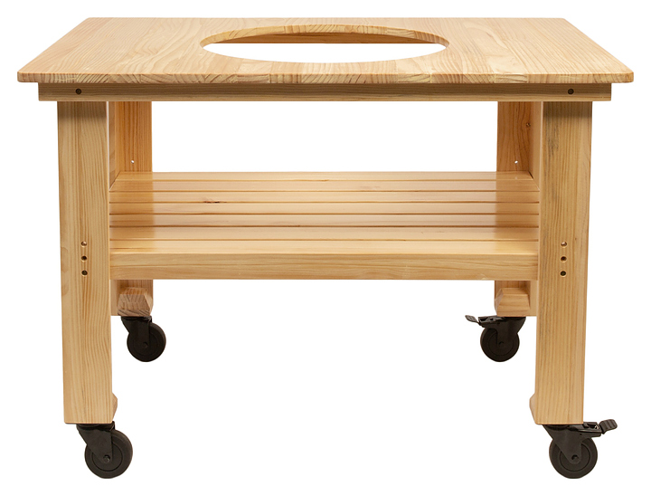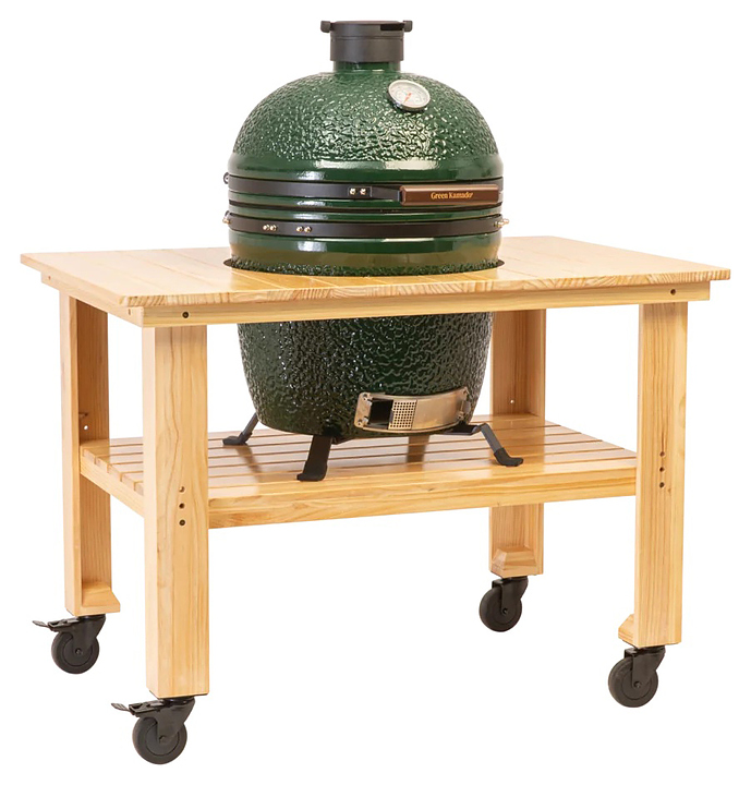 Деревянный стол используется совместно с керамическим грилем Green Kamado M для организации рабочего пространства. Поверхность столешницы дает достаточно места для заготовок, готовых блюд и инструментов. При установке гриля в стол, использование специальных ножек для стола обязательно, чтобы защитить деревянную поверхность от температурного воздействий горячего гриля. Аксессуар выполнен из массива дерева, обработан стойким покрытием, сохраняющий естественный рисунок и уникальные узоры натурального дерева. Характеристики: