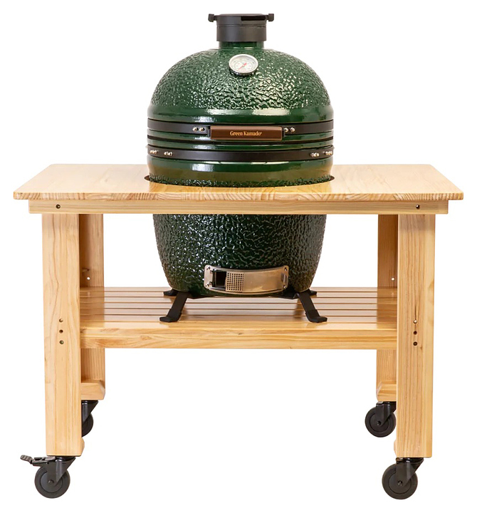 Деревянный стол используется совместно с керамическим грилем Green Kamado L для организации рабочего пространства. Поверхность столешницы дает достаточно места для заготовок, готовых блюд и инструментов. При установке гриля в стол, использование специальных ножек для стола обязательно, чтобы защитить деревянную поверхность от температурного воздействий горячего гриля. Аксессуар выполнен из массива дерева, обработан стойким покрытием, сохраняющий естественный рисунок и уникальные узоры натурального дерева. Характеристики: