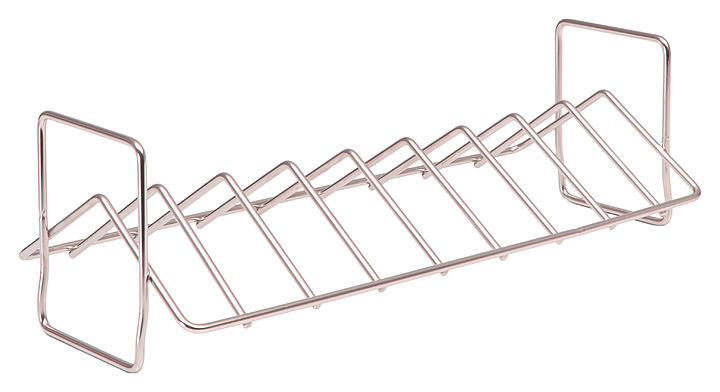 V-образная двусторонняя подставка используется совместно с керамическим грилем Green Kamado L и XL для удобного запекания свиных и говяжьих ребрышек разного размера. Форма подставки позволяет воздуху постоянно циркулировать вокруг ребрышек, они запекаются равномерно и сохраняют свою форму во время готовки. Решетка имеет 2 положения: с одной стороны - для жарки рёбрышек, с другой - для жарки больших кусков мяса, утки или гуся. Характеристики: