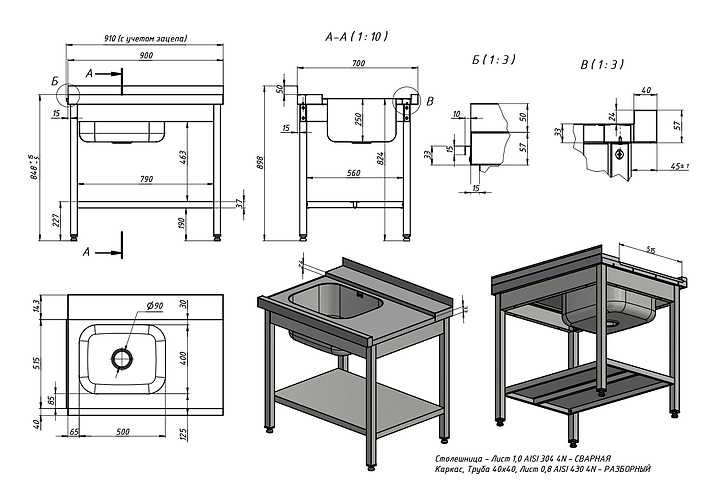 Стол KAYMAN СПМ-321/0907 используется на предприятиях общественного питания и торговли совместно с посудомоечными машинами TATRA TW.H50+DR и TW.H50+DR+DD для расстановки, временного хранения, предварительного ополаскивания и мытья грязной посуды и кухонного инвентаря. Модель оснащена разборным каркасом из трубы, раковиной, направляющими, плоским бортом и обвязкой с 4 сторон. Стол устанавливается справа от оборудования и имеет крепление на левой части. Столешница выполнена из нержавеющей стали AISI 304, каркас - из нержавеющей стали AISI 430. Дополнительные характеристики: