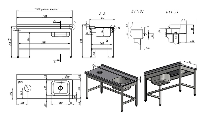 Стол KAYMAN СПМ-323/1507 используется на предприятиях общественного питания и торговли совместно с посудомоечными машинами TATRA TW.H50+DR и TW.H50+DR+DD для расстановки, временного хранения, предварительного ополаскивания и мытья грязной посуды и кухонного инвентаря. Модель оснащена разборным каркасом из трубы, раковиной, отверстием для сбора отходов, направляющими, плоским бортом и обвязкой с 3 сторон. Стол устанавливается слева от оборудования и имеет крепление на правой части. Столешница выполнена из нержавеющей стали AISI 304, каркас - из нержавеющей стали AISI 430. Дополнительные характеристики: