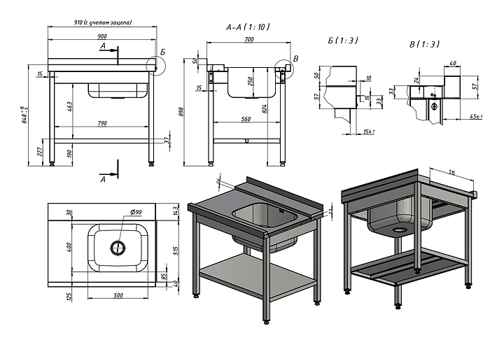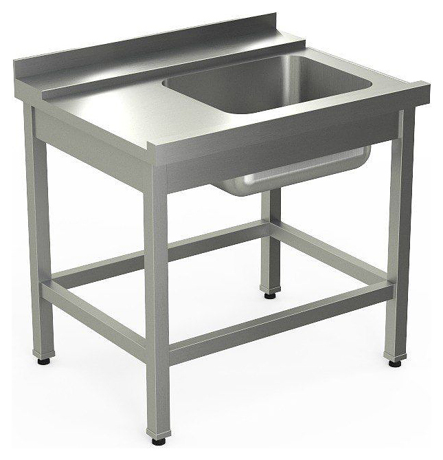 Стол KAYMAN СПМ-321/0907 используется на предприятиях общественного питания и торговли совместно с посудомоечными машинами TATRA TW.H50+DR и TW.H50+DR+DD для расстановки, временного хранения, предварительного ополаскивания и мытья грязной посуды и кухонного инвентаря. Модель оснащена разборным каркасом из трубы, раковиной, направляющими, плоским бортом и обвязкой с 4 сторон. Стол устанавливается слева от оборудования и имеет крепление на правой части. Столешница выполнена из нержавеющей стали AISI 304, каркас - из нержавеющей стали AISI 430. Дополнительные характеристики: