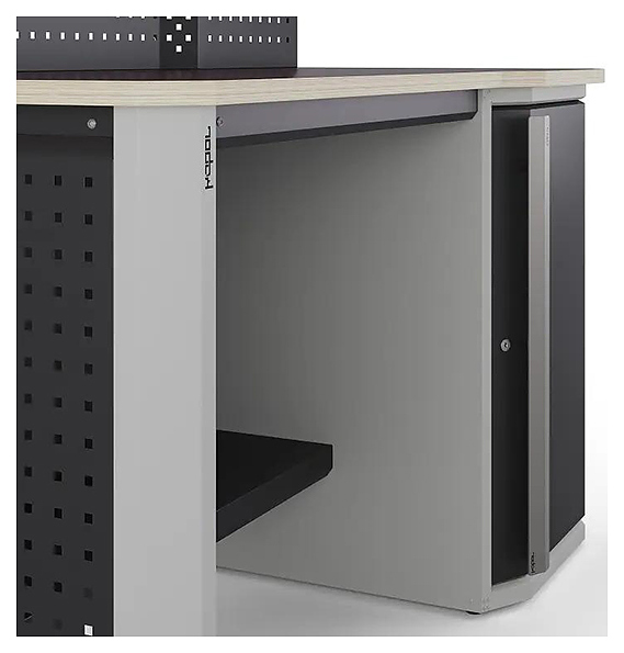 Верстак Кобор Expert MW.1R/P1-100/70 M3 предназначен для выполнения сборочных, ремонтных, слесарных, монтажных и других видов работ на производстве, в сервисных центрах, мастерских, гаражах и в образовательных учреждениях для практических занятий. Встроенная тумба с дверцей гарантирует комфортное использования и позволяет хранить необходимые инструменты и материалы на рабочем месте. Защитный экран обеспечивает дополнительную безопасность при выполнении работ, связанных с возможным разлетом мелких частиц или искр. Рама обладает высокой устойчивостью благодаря опорным элементам, перемычкам и боковой перфопанели. Столешница выполнена из ламинированной фанеры, покрытой окрашенным листом металла. Особенности: