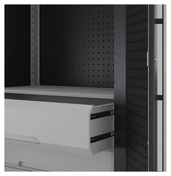 Шкаф Кобор Expert MC/2-100/60 1P.03B предназначен для хранения оснастки, приспособлений и инструмента на рабочих местах в мастерских, цехах и других производственных зонах. Модель оснащена 2 распашными дверьми с внутренней перфорацией для навешивания крючков и держателей, 3 ящиками, 1 полкой, перфопанелью и ригельным замком. Корпус выполнен из листовой стали с порошковой краской, которая отличается высокой устойчивостью к истиранию, влаге, моющим и смазочным веществам. Внимание! Информация о товарах, размещенная на сайте, не является публичной офертой, определяемой положениями Части 2 Статьи 437 Гражданского кодекса Российской Федерации. Производители вправе вносить изменения в технические характеристики, внешний вид и комплектацию товаров без предварительного уведомления. Уточняйте характеристики у наших менеджеров перед оформлением заказа. |
