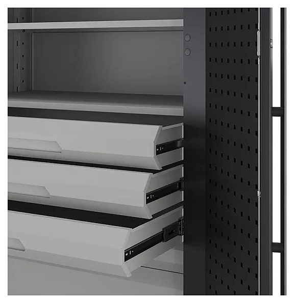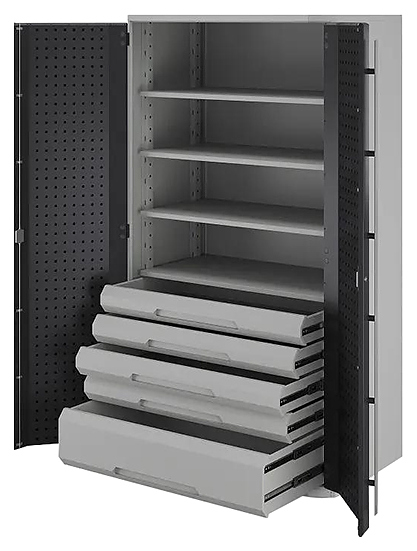 Шкаф Кобор Expert MC/2-100/60 4S.41B предназначен для хранения оснастки, приспособлений и инструмента на рабочих местах в мастерских, цехах и других производственных зонах. Модель оснащена 2 распашными дверьми с внутренней перфорацией для навешивания крючков и держателей, 4 полками, 5 ящиками и ригельным замком. Корпус выполнен из листовой стали с порошковой краской, которая отличается высокой устойчивостью к истиранию, влаге, моющим и смазочным веществам. Внимание! Информация о товарах, размещенная на сайте, не является публичной офертой, определяемой положениями Части 2 Статьи 437 Гражданского кодекса Российской Федерации. Производители вправе вносить изменения в технические характеристики, внешний вид и комплектацию товаров без предварительного уведомления. Уточняйте характеристики у наших менеджеров перед оформлением заказа. |