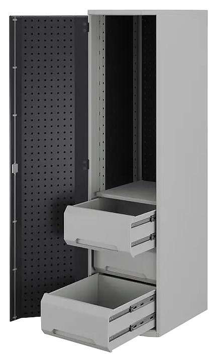 Шкаф Кобор Expert MC/1-50/60 1S.1P.03B предназначен для хранения оснастки, приспособлений и инструмента на рабочих местах в мастерских, цехах и других производственных зонах. Модель оснащена распашной дверью с внутренней перфорацией для навешивания крючков и держателей, 1 полкой, 3 ящиками, перфопанелью и ригельным замком. Корпус выполнен из листовой стали с порошковой краской, которая отличается высокой устойчивостью к истиранию, влаге, моющим и смазочным веществам. Внимание! Информация о товарах, размещенная на сайте, не является публичной офертой, определяемой положениями Части 2 Статьи 437 Гражданского кодекса Российской Федерации. Производители вправе вносить изменения в технические характеристики, внешний вид и комплектацию товаров без предварительного уведомления. Уточняйте характеристики у наших менеджеров перед оформлением заказа. |