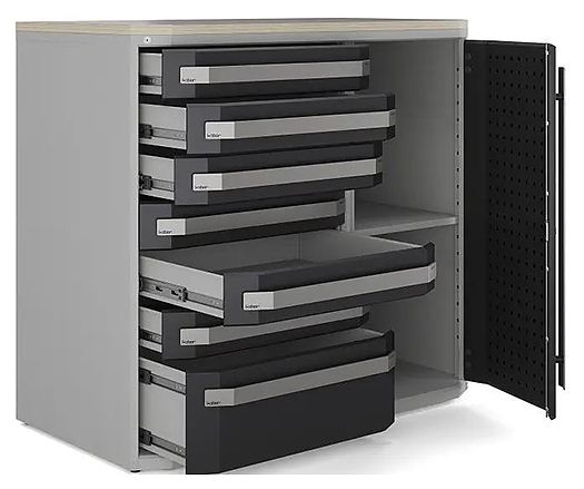 Тумба Кобор Expert MTF/4-90/64 2S.61B предназначена для выполнения сборочных, ремонтных, слесарных, монтажных и других видов работ на производстве, в сервисных центрах, мастерских, гаражах и в образовательных учреждениях для практических занятий. Модель оснащена 2 полками и 7 выдвижными ящиками, которые гарантируют комфортное использование и позволяют хранить необходимые инструменты и материалы на рабочем месте. Столешница выполнена из ламинированной фанеры, рама - из металла с антикоррозийным покрытием. Особенности: