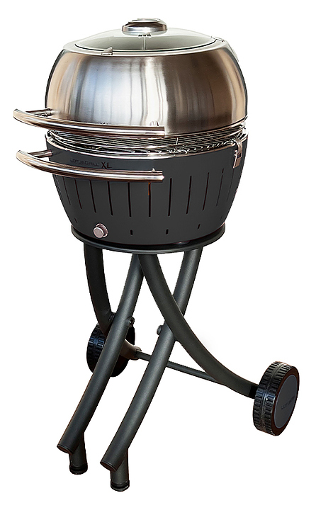 Гриль LotusGrill XL предназначен для приготовления мясных, рыбных и овощных блюд в саду или на террасе. Встроенный вентилятор с питанием от аккумулятора обеспечивает подачу свежего воздуха к углю и обеспечивает бездымное разжигание. Образование искр и выпадение углей сведено к минимуму благодаря горению в закрытой корзине. Центральная пластина направляет жир при приготовлении пищи во внутреннюю чашу и предотвращает попадание на угли. Защелки по бокам внешней чаши удерживают вместе решетку, контейнер для угля и внутреннюю чашу для создания безопасного автономного устройства. Модель оснащена тележкой с колесами для перемещения и крышкой со смотровым окном и термометром для контроля за приготовлением. Решетка, внутренняя чаша, контейнер для угля, пластина зажигания, крышка и защелки выполнены из нержавеющей стали, внешняя чаша - из стали с порошковым покрытием, подставка - из прочного пластика, окно - из закаленного стекла. В комплект поставки входят тележка, 4 батарейки типа АА и USB-кабель. Особенности: