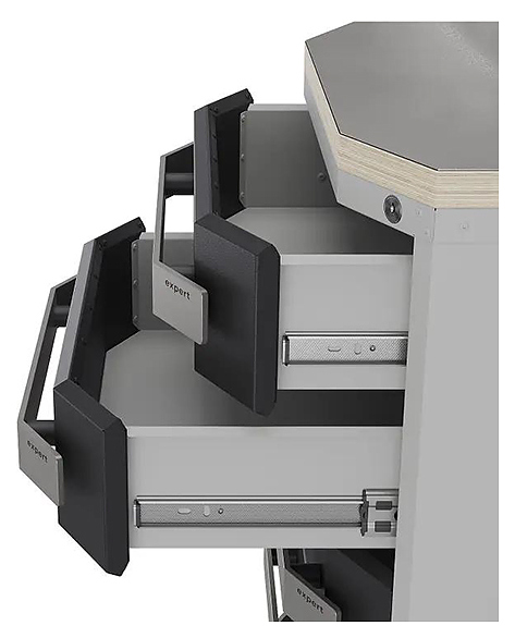 Тумба Кобор Expert TT/1-70/64 41B предназначена для хранения и транспортировки к рабочему месту инструментов и приборов, необходимых для работы на сервисных и слесарных участках, в цехах заводов и на промышленных предприятиях. Модель оснащена 5 выдвижными ящиками, которые гарантируют комфортное использование и позволяют хранить необходимые инструменты и материалы на рабочем месте. Тумба имеет 4 поворотных колеса, обеспечивающих легкое перемещение по производственной зоне и стабильную фиксацию на месте. Корпус выполнен из металла с порошковым покрытием, устойчивым к механическим и химическим воздействиям. Особенности: