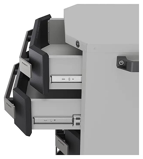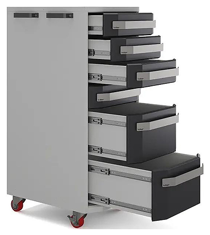 Тумба Кобор Expert TTL/3-70/64 42B предназначена для хранения и транспортировки к рабочему месту инструментов и приборов, необходимых для работы на сервисных и слесарных участках, в цехах заводов и на промышленных предприятиях. Модель оснащена ложементом с прорезиненными бортиками и 6 выдвижными ящиками, которые гарантируют комфортное использование и позволяют хранить необходимые инструменты и материалы на рабочем месте. Тумба имеет 4 поворотных колеса, обеспечивающих легкое перемещение по производственной зоне и стабильную фиксацию на месте. Корпус выполнен из металла с порошковым покрытием, устойчивым к механическим и химическим воздействиям. Особенности: