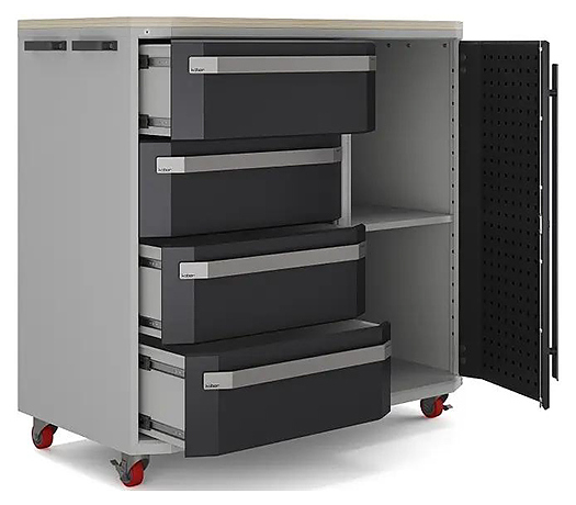 Тумба Кобор Expert TTZ/2-90/64 2S.04B предназначена для хранения и транспортировки к рабочему месту инструментов и приборов, необходимых для работы на сервисных и слесарных участках, в цехах заводов и на промышленных предприятиях. Модель оснащена распашной дверью, 2 полками и 4 выдвижными ящиками, которые гарантируют комфортное использование и позволяют хранить необходимые инструменты и материалы на рабочем месте. Тумба имеет 4 поворотных колеса, обеспечивающих легкое перемещение по производственной зоне и стабильную фиксацию на месте. Корпус выполнен из металла с порошковым покрытием, устойчивым к механическим и химическим воздействиям, столешница - из ламинированной фанеры, покрытой оцинкованной сталью. Особенности:
