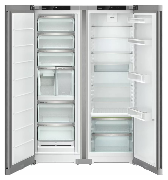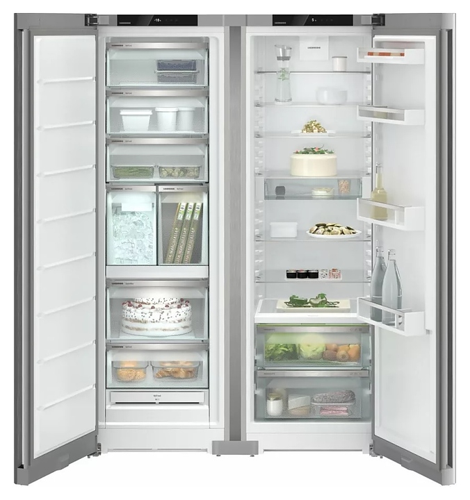 Холодильник Liebherr XRFsf 5245 серии Plus типа Side-by-Side предназначен для охлаждения, замораживания, кратковременного и длительного хранения пищевых продуктов и напитков в гостиничных комплексах, офисах, а также домашних условиях. Модель состоит из холодильной камеры SRBsfc 5220 справа и морозильной камеры SFNsfd 5247 слева, каждая камера оснащена компрессором, перенавешиваемой распашной дверью, кабелем питания с евровилкой, расположенными за дверью в верхней части фронта сенсорной панелью управления и монохромным жидкокристаллическим дисплеем с белой подсветкой индикации. Фасад дверей выполнен из материала Colaminat с вертикальным крацеванием поверхности SteelFinish под нержавеющую сталь серебристого оттенка, боковины – из стали с лакированным антикоррозийным покрытием в тон фасада, внутренняя облицовка камер – из белого пластика, плоские полки – из прозрачного закаленного стекла, ящики и навесные полки – из белого пластика с прозрачным фронтом, ящики и полки декорированы окантовками серебристого оттенка, решетчатая полка с хромированной поверхностью, упаковка – из гофрокартона, полимерной пленки и полистирола.