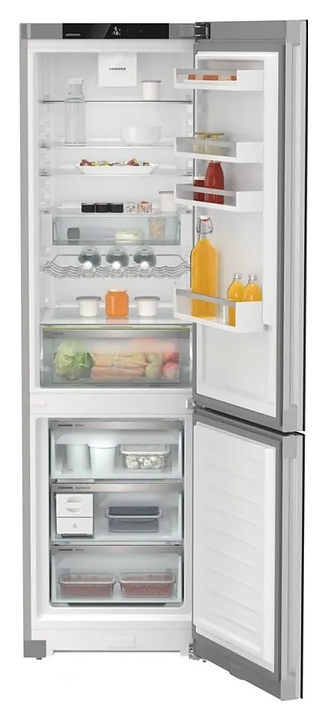 Холодильник Liebherr CNgbc 5723 серии Plus предназначен для охлаждения, замораживания, кратковременного и длительного хранения пищевых продуктов и напитков в гостиничных комплексах, офисах, а также домашних условиях. Модель оснащена холодильной камерой сверху и морозильной камерой снизу, правосторонними перенавешиваемыми распашными дверьми, кабелем питания с евровилкой, расположенными за дверью холодильной камеры в верхней части фронта сенсорной панелью управления и монохромным жидкокристаллическим дисплеем с белой подсветкой индикации. Боковины выполнены из стали с лакированным антикоррозийным покрытием серебристого оттенка, фасад двери – из устойчивого к царапинам и истиранию черного стекла, внутренняя облицовка камер – из белого пластика, плоские полки – из прозрачного закаленного стекла, ящики – из белого пластика с прозрачным фронтом, навесные полки – из белого пластика, ящики и полки декорированы окантовками серебристого оттенка, упаковка – из гофрокартона, полимерной пленки и полистирола.