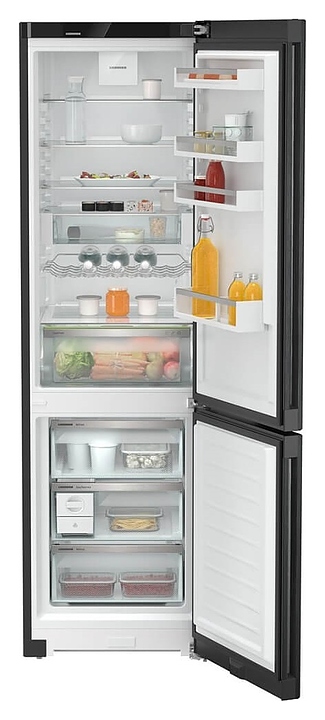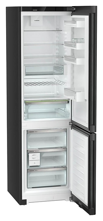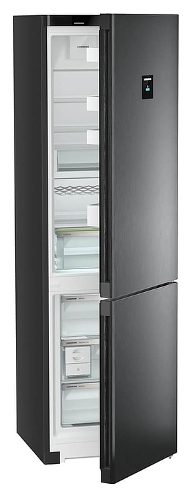 Холодильник Liebherr CBNbdc 573i серии Plus предназначен для охлаждения, замораживания, кратковременного и длительного хранения пищевых продуктов и напитков в гостиничных комплексах, офисах, а также домашних условиях. Модель оснащена холодильной камерой сверху и морозильной камерой снизу, правосторонними перенавешиваемыми распашными дверьми, кабелем питания с евровилкой, плавно интегрированным в фасад двери холодильной камеры цветным TFT-дисплеем управления и индикации. Фасад дверей выполнен из нержавеющей стали с устойчивой к царапинам и отпечаткам пальцев сатинированной вертикальными штрихами поверхностью BlackSteel оттенка черная сталь, боковины – из стали с лакированным антикоррозийным покрытием в тон фасада, внутренняя облицовка камер – из белого пластика, плоские полки – из прозрачного закаленного стекла, ящики и навесные полки – из белого пластика с прозрачным фронтом, ящики и полки декорированы окантовками серебристого оттенка, решетчатая полка – из металла с хромированной поверхностью, сухая задняя панель – из пластика, упаковка – из гофрокартона, полимерной пленки и полистирола.