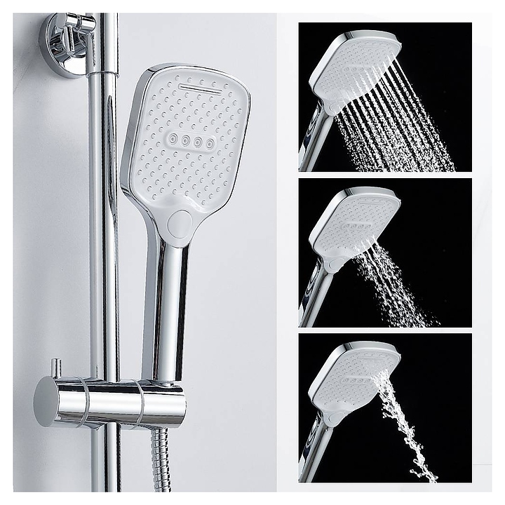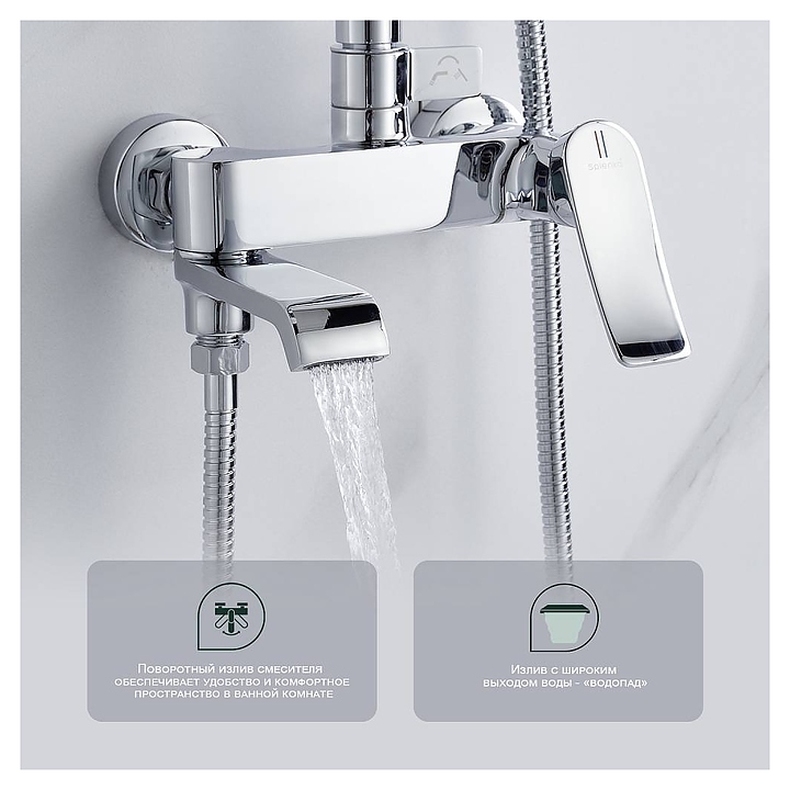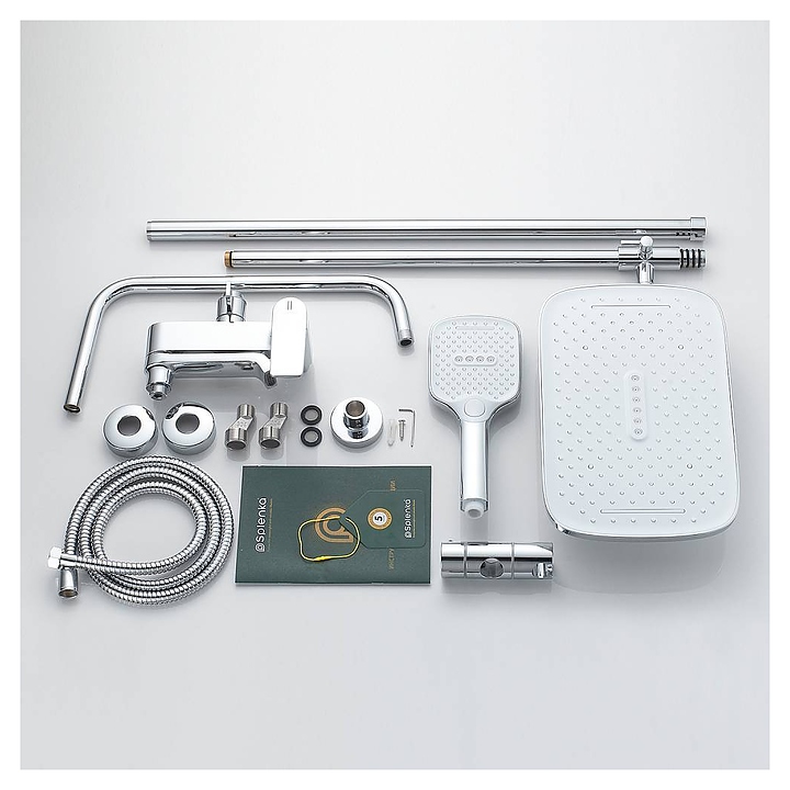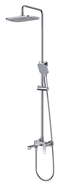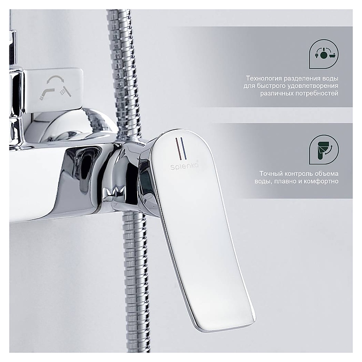 Душевая система Splenka S31.24 предназначена для подачи горячей и холодной воды в ванных помещениях. Модель оснащена прямоугольными верхним душем и ручной лейкой. Керамический картридж обеспечивает плавный ход рычага смесителя, контроль и точность при выборе напора и температуры воды. Аэратор создает мягкую струю без брызг. Изделие выполнено из латуни, шланг - из металла. В комплект поставки входят верхний душ, душевая штанга с держателем лейки, ручной душ, смеситель и шланг. Особенности: