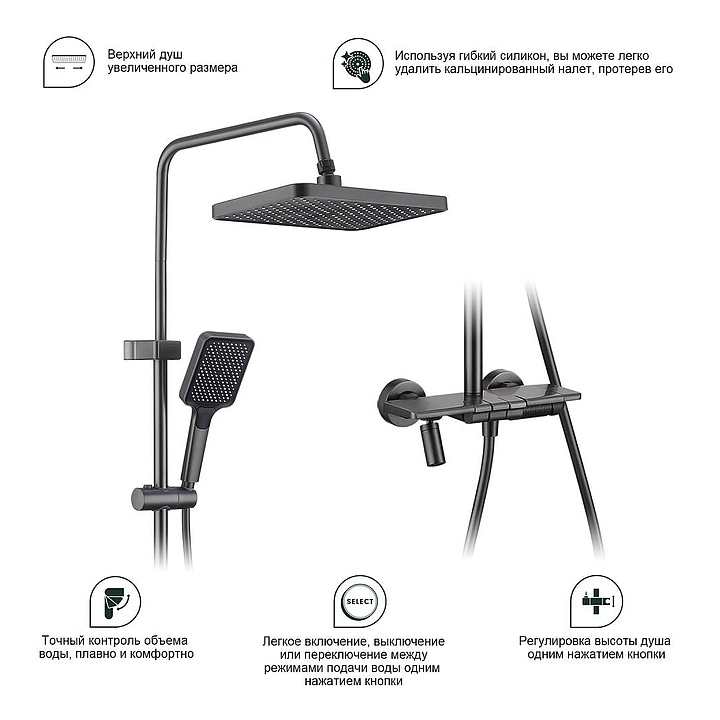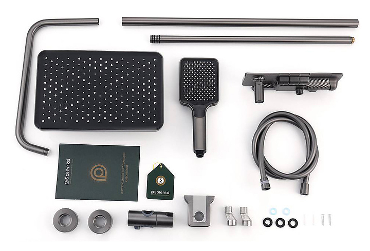 Душевая система Splenka S52.24.09 предназначена для подачи горячей и холодной воды в ванных помещениях. Модель оснащена прямоугольными верхним душем и ручной лейкой. Керамический картридж обеспечивает контроль и точность при выборе напора и температуры воды. Аэратор создает мягкую струю без брызг. Изделие выполнено из латуни, шланг - из ПВХ. В комплект поставки входят верхний душ, душевая штанга с держателем лейки, ручной душ, смеситель и шланг. Особенности: