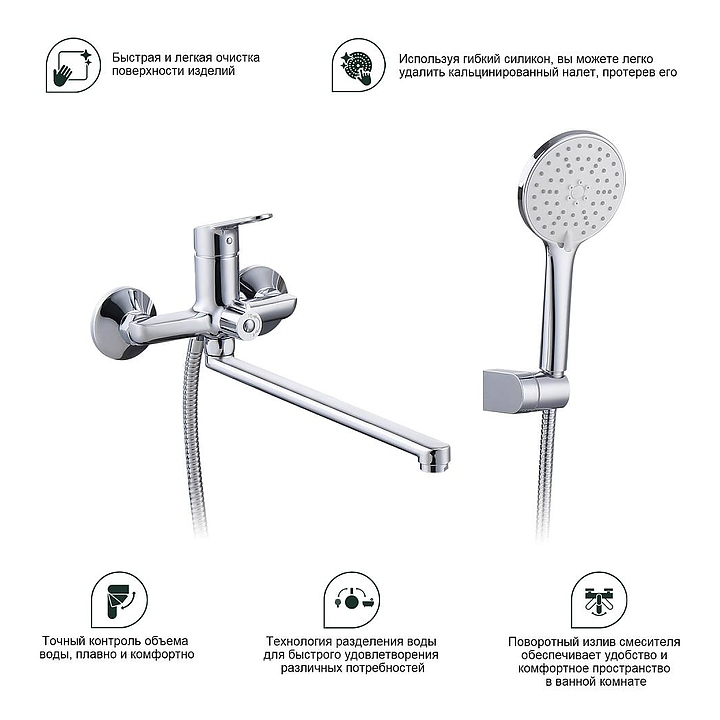 Смеситель для ванны и душа Splenka S07.22 предназначен для подачи горячей и холодной воды в ванных помещениях. Керамический картридж обеспечивает плавный ход рычага смесителя, контроль и точность при выборе напора и температуры воды. Аэратор экономит воду, насыщает воздухом и создает мягкую струю без брызг. Изделие выполнено из латуни, которая отличается прочностью, долговечностью и устойчивостью к перепадам температуры, шланг - из металла, пластины переключателя - из керамики. В комплект поставки входят смеситель, шланг, 3-режимная душевая лейка, держатель душевой лейки, эксцентрики и отражатели. Дополнительные характеристики: