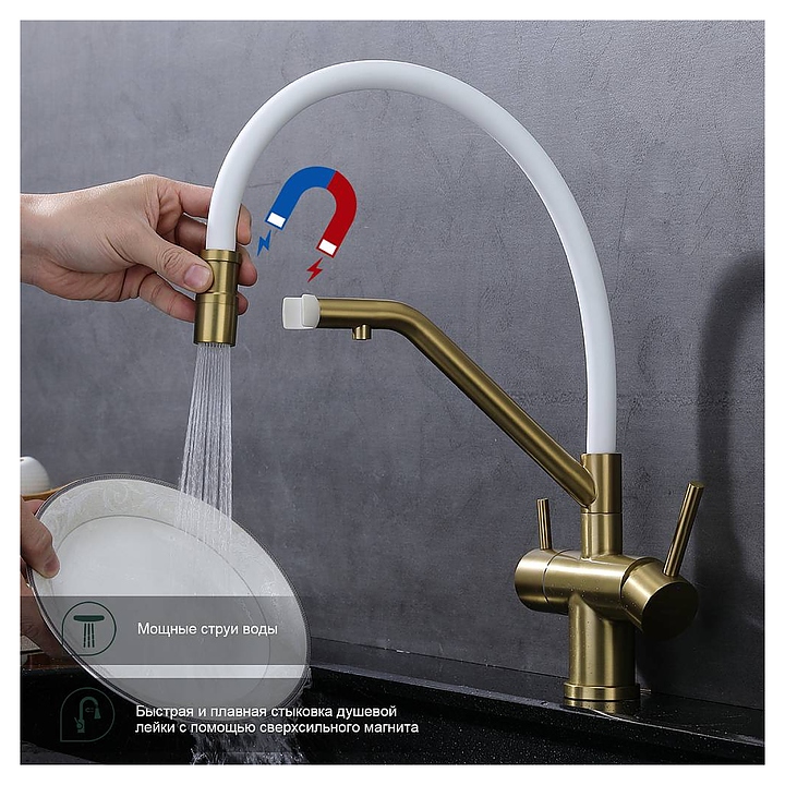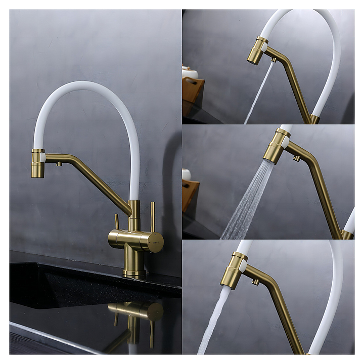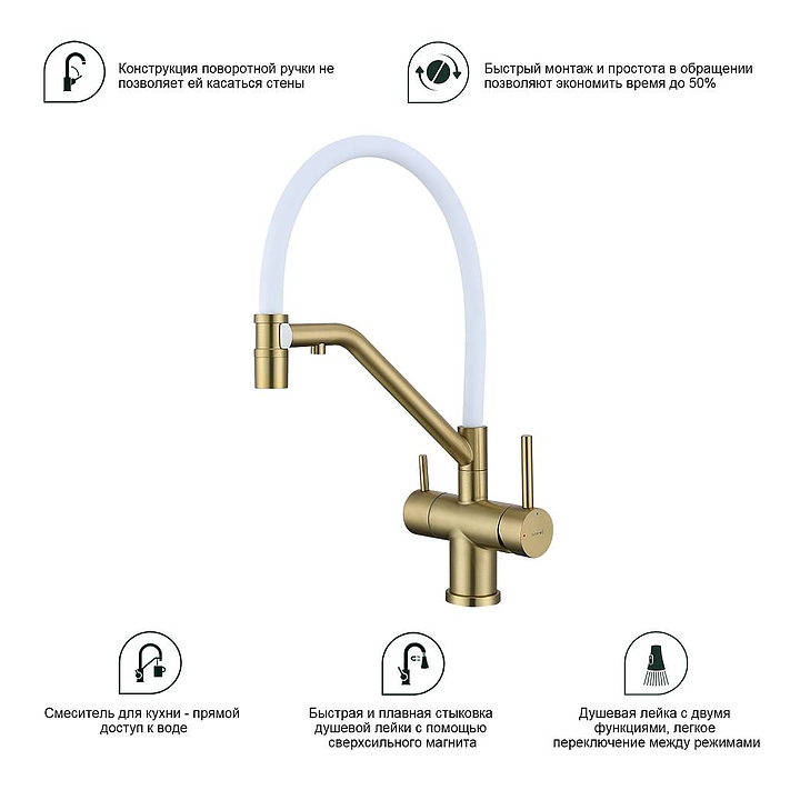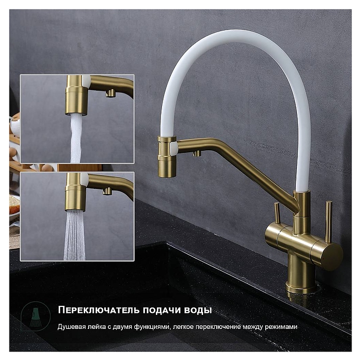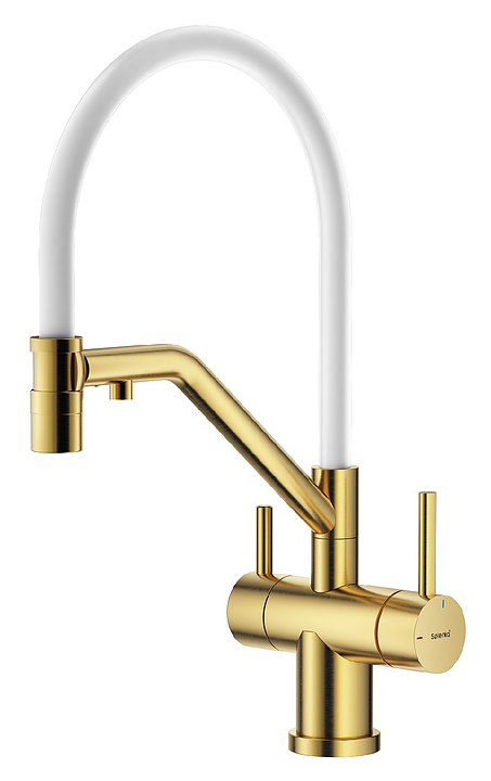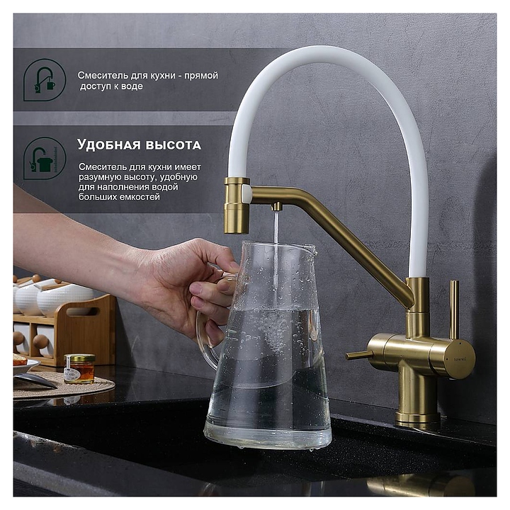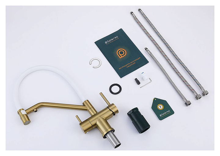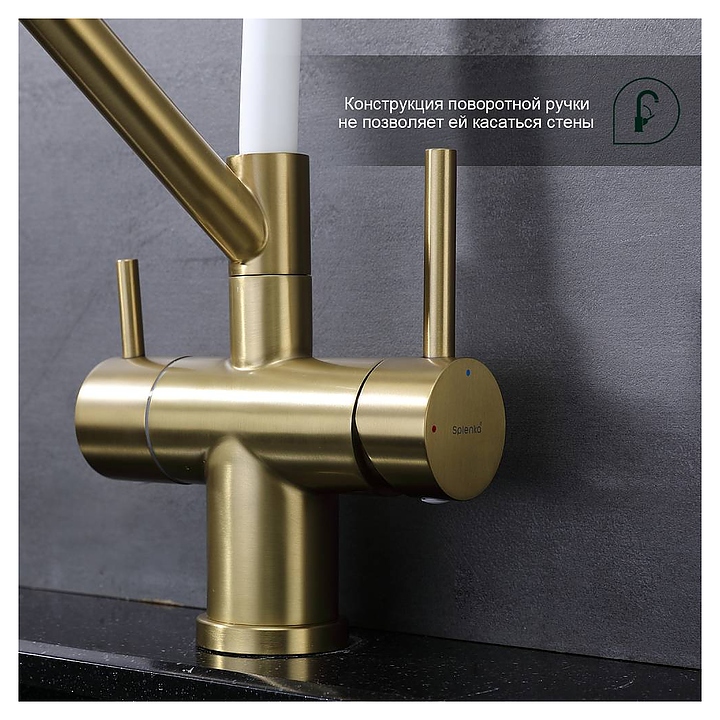 Смеситель Splenka S70.62.03 предназначен для подачи горячей и холодной воды в кухонных помещениях. Модель оснащена гибким изливом, встроенным фильтром для питьевой воды и керамическим картриджем, обеспечивающим плавный ход рычага смесителя, контроль и точность при выборе напора и температуры воды. Аэратор создает мягкую струю без брызг и снижает шум. Изделие выполнено из нержавеющей стали, которая отличается прочностью и долговечностью, излив - из пищевого силикона, картридж - из керамики. В комплект поставки входят гибкая подводка и крепления. Особенности: