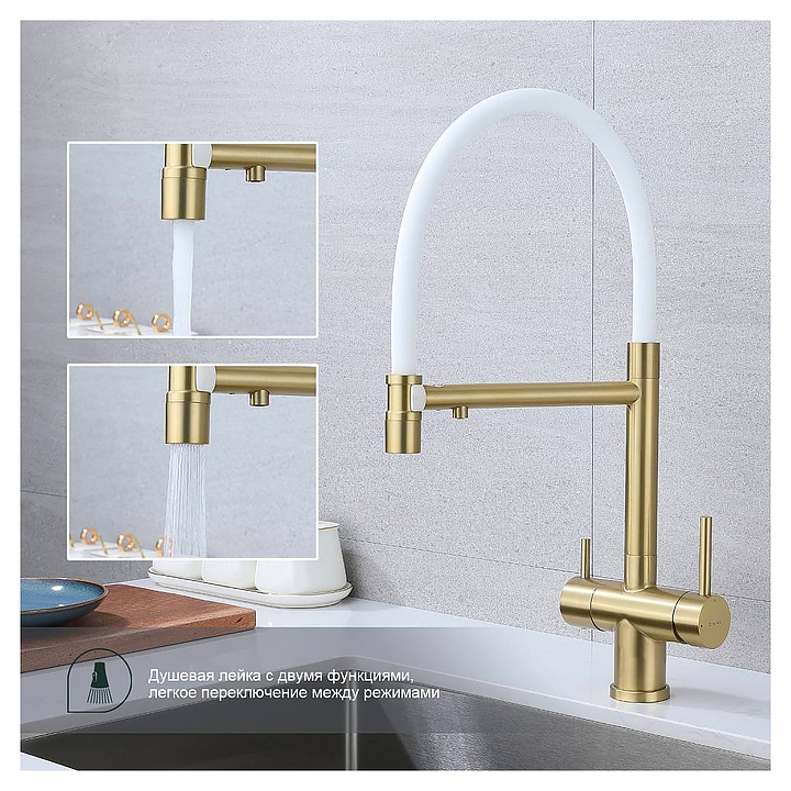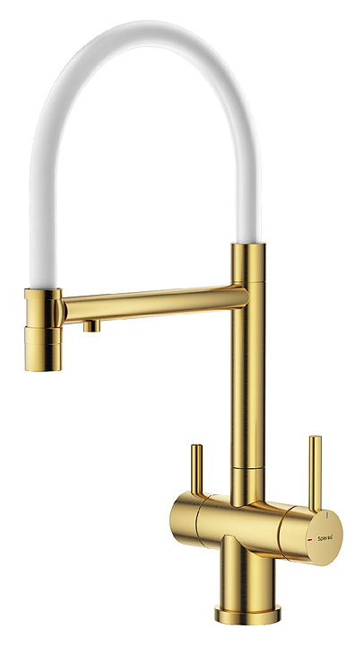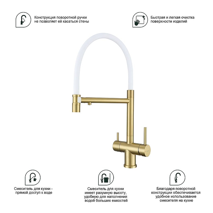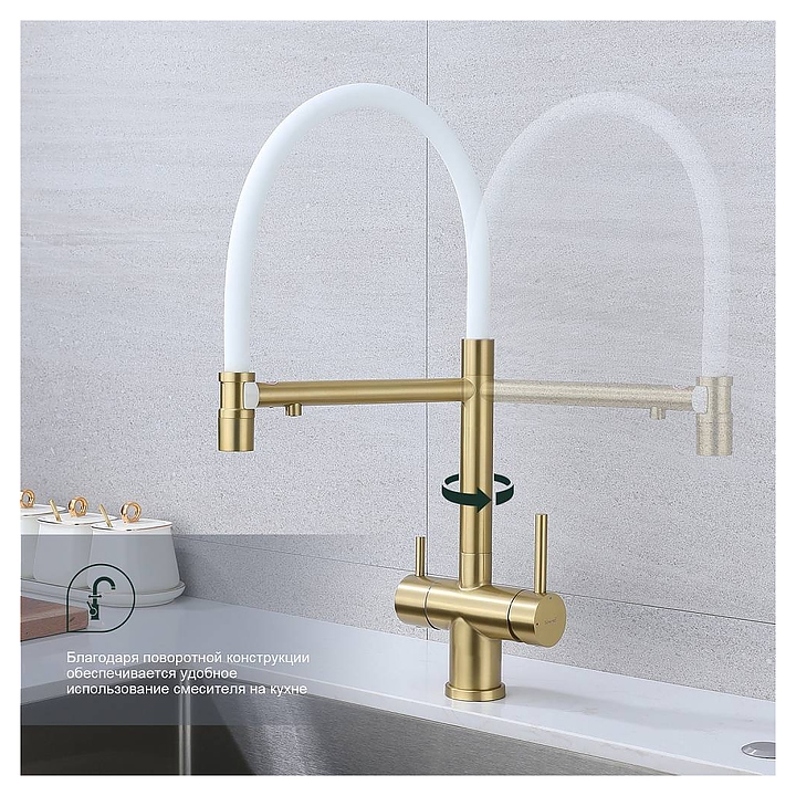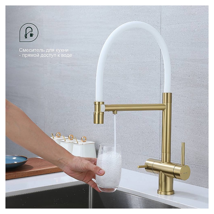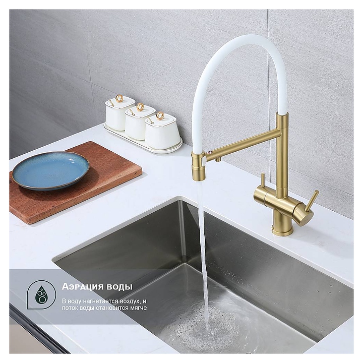 Смеситель Splenka S70.63.03 предназначен для подачи горячей и холодной воды в кухонных помещениях. Модель оснащена гибким изливом, встроенным фильтром для питьевой воды и керамическим картриджем, обеспечивающим плавный ход рычага смесителя, контроль и точность при выборе напора и температуры воды. Аэратор создает мягкую струю без брызг и снижает шум. Изделие выполнено из нержавеющей стали, которая отличается прочностью и долговечностью, излив - из пищевого силикона, картридж - из керамики. В комплект поставки входят подводка и крепления. Особенности:
