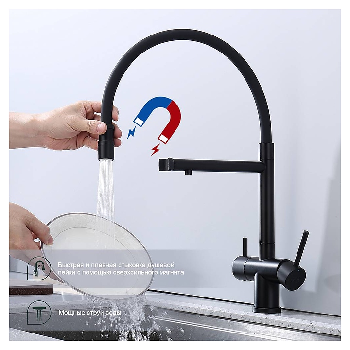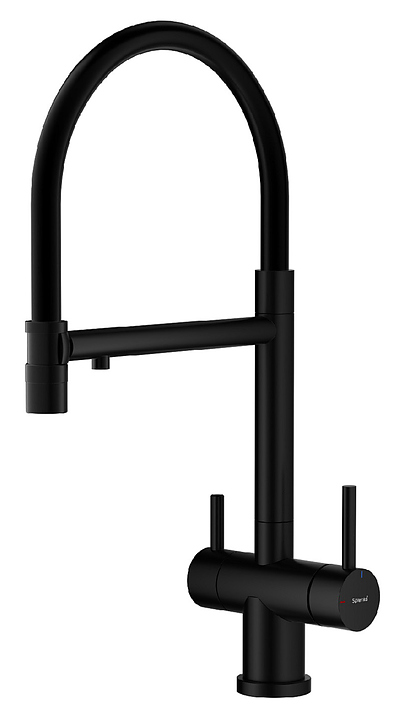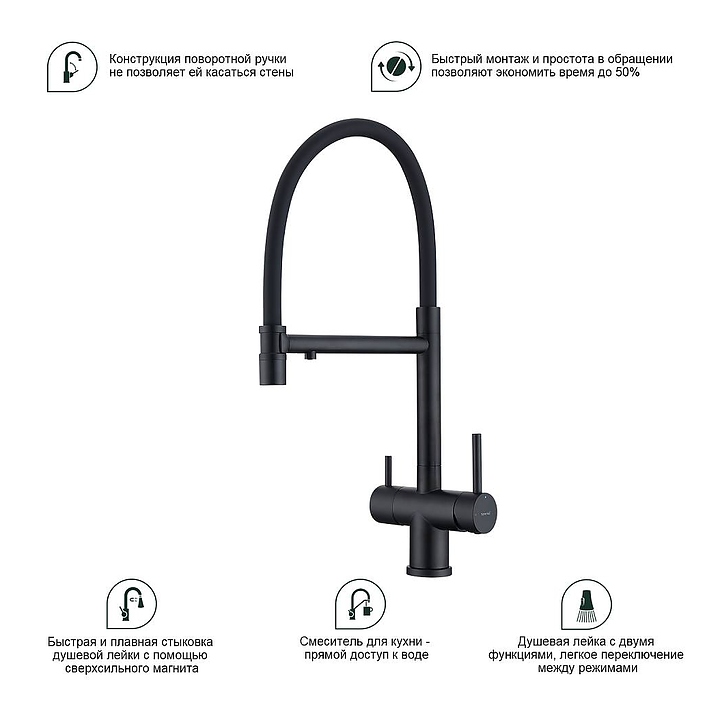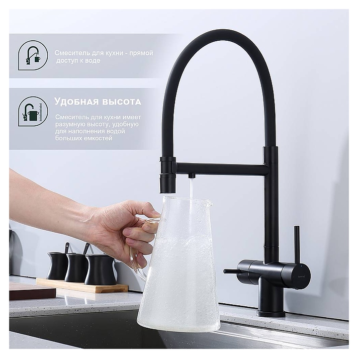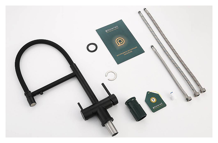 Смеситель Splenka S70.63.06 предназначен для подачи горячей и холодной воды в кухонных помещениях. Модель оснащена гибким изливом, встроенным фильтром для питьевой воды и керамическим картриджем, обеспечивающим плавный ход рычага смесителя, контроль и точность при выборе напора и температуры воды. Аэратор создает мягкую струю без брызг и снижает шум. Изделие выполнено из нержавеющей стали, которая отличается прочностью и долговечностью, излив - из пищевого силикона, картридж - из керамики. В комплект поставки входят подводка и крепления. Особенности:
