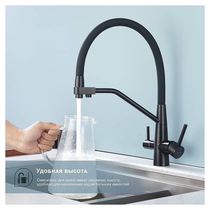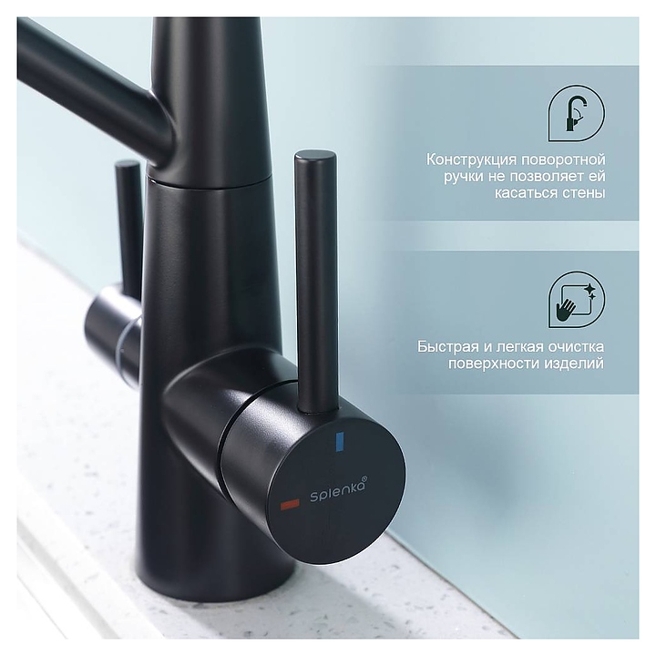 Смеситель Splenka S71.62.06 предназначен для подачи горячей и холодной воды в кухонных помещениях. Модель оснащена гибким изливом, встроенным фильтром для питьевой воды и керамическим картриджем, обеспечивающим плавный ход рычага смесителя, контроль и точность при выборе напора и температуры воды. Аэратор создает мягкую струю без брызг и снижает шум. Изделие выполнено из нержавеющей стали, которая отличается прочностью и долговечностью. В комплект поставки входят подводка и крепления. Особенности: