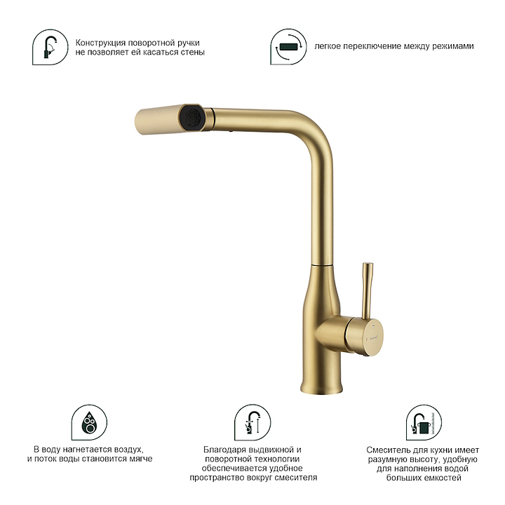 Смеситель Splenka S206.49.03 предназначен для подачи горячей и холодной воды в кухонных помещениях. Модель оснащена выдвижным многофункциональным изливом и керамическим картриджем, обеспечивающим плавный ход рычага смесителя, контроль и точность при выборе напора и температуры воды. Аэратор создает мягкую струю без брызг и снижает шум. Изделие выполнено из нержавеющей стали, которая отличается прочностью и долговечностью. В комплект поставки входят подводка и крепления. Особенности: