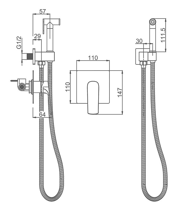 Гигиенический душ Splenka S30.53.09 предназначен для подачи горячей и холодной воды в туалетных комнатах. Керамический картридж обеспечивает плавный ход рычага смесителя, контроль и точность при выборе напора и температуры воды. Корпус выполнен из высококачественной латуни, отличающейся прочностью, долговечностью и устойчивостью к перепадам температуры, лейка - из ABS пластика, шланг - из металла. В комплект поставки входят внутренняя часть, 1-режимная лейка и шланг. Особенности: