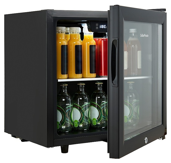 Холодильный шкаф Cellar Private CP017AB предназначен для охлаждения, хранения и демонстрации пищевых продуктов и напитков, а также косметических и лекарственных средств на предприятиях общественного питания и торговли, в гостиницах, различных учреждениях и домашних условиях. Модель оснащена холодильной камерой, правосторонней перенавешиваемой распашной дверью с интегрированной в торец вертикальной рукояткой, прозрачным обзорным остеклением и расположенной за дверью в верхней части фронта электронной панелью управления с цифровым дисплеем индикации. Корпус выполнен из металла с антикоррозийным покрытием черного цвета, рама двери – из черного пластика, полка – из стекла. В комплект поставки входят полка, комплект ключей к замку, инструкция по эксплуатации и гарантийный талон. Особенности: