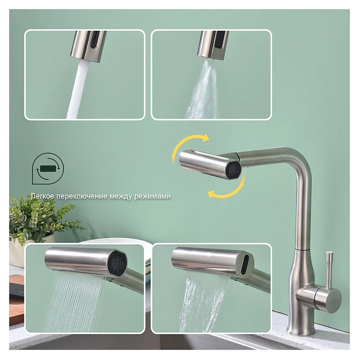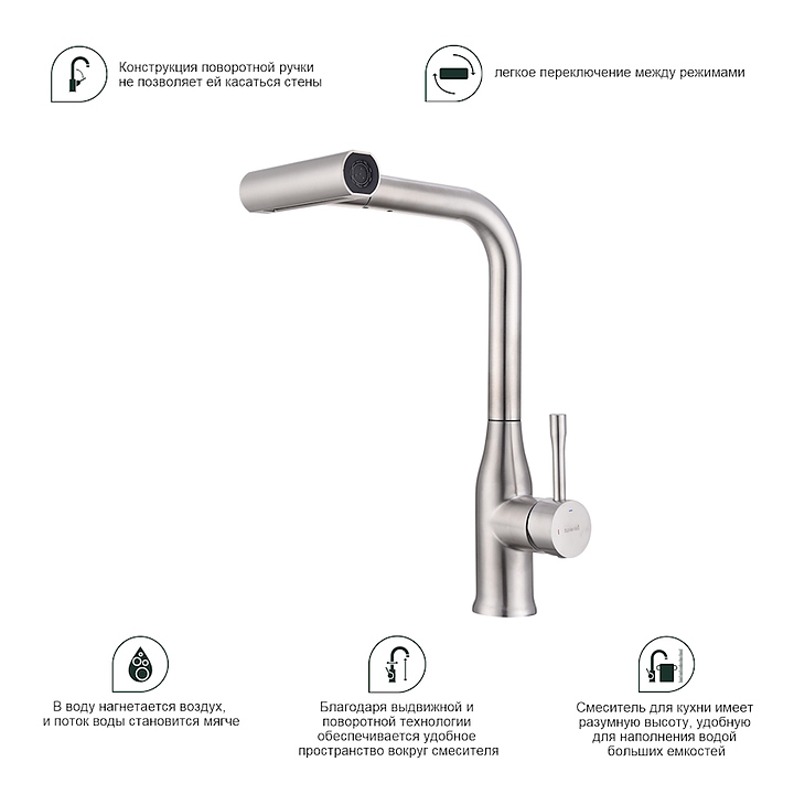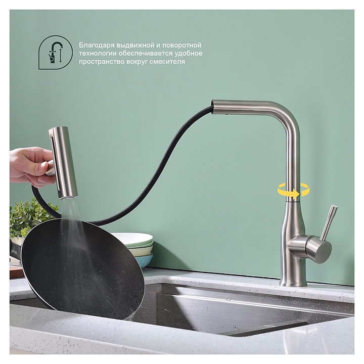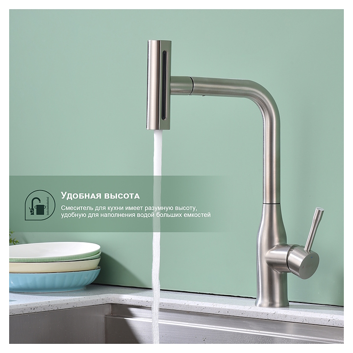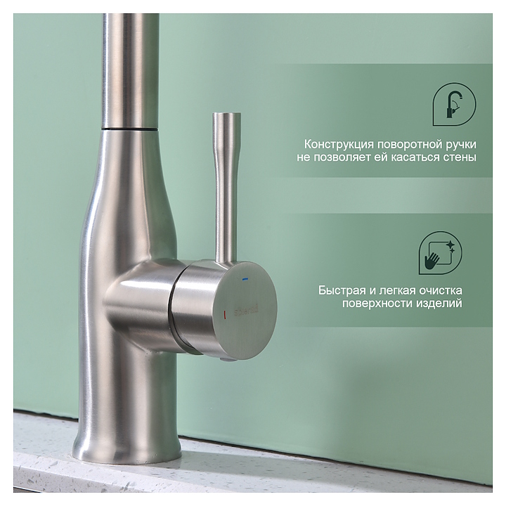 Смеситель Splenka S206.49.05 предназначен для подачи горячей и холодной воды в кухонных помещениях. Модель оснащена выдвижным многофункциональным изливом и керамическим картриджем, обеспечивающим плавный ход рычага смесителя, контроль и точность при выборе напора и температуры воды. Аэратор создает мягкую струю без брызг и снижает шум. Изделие выполнено из нержавеющей стали, которая отличается прочностью и долговечностью. В комплект поставки входят подводка и крепления. Особенности: