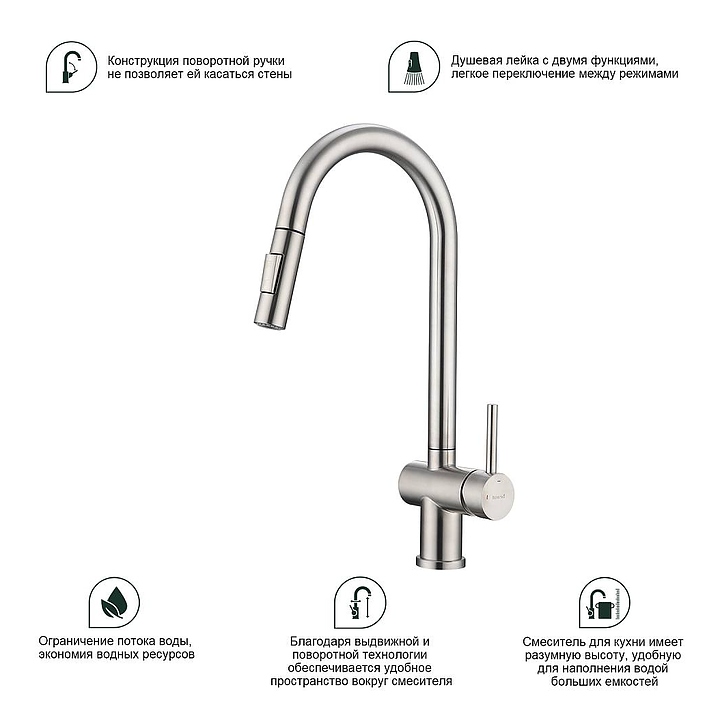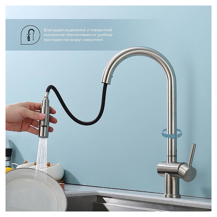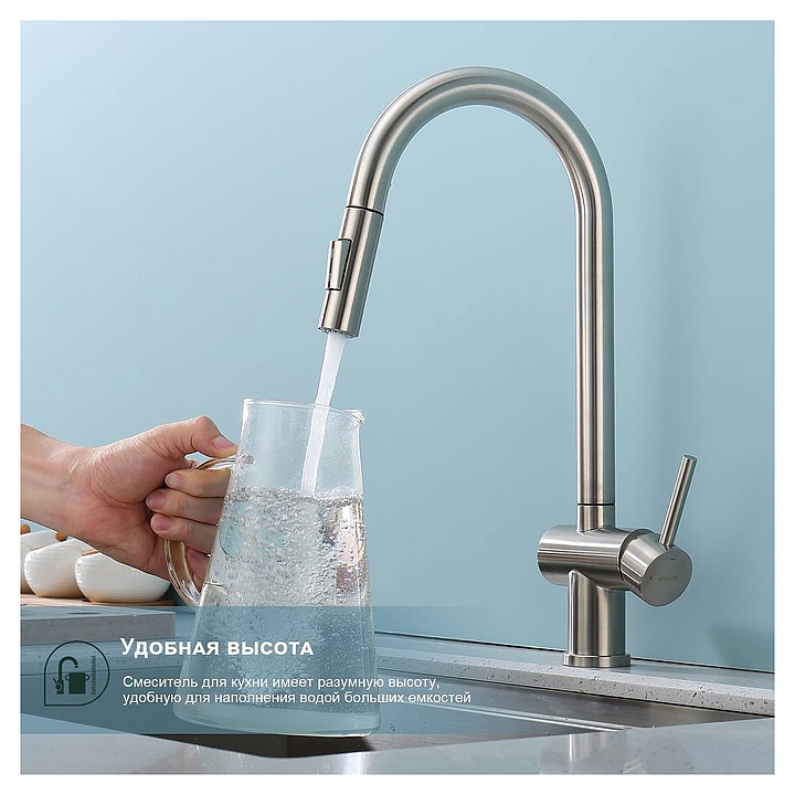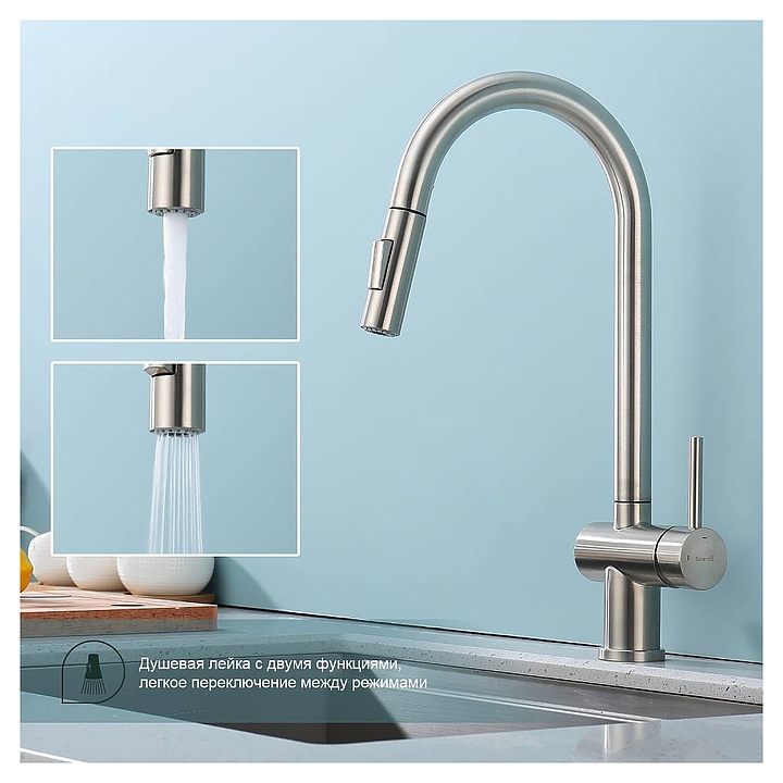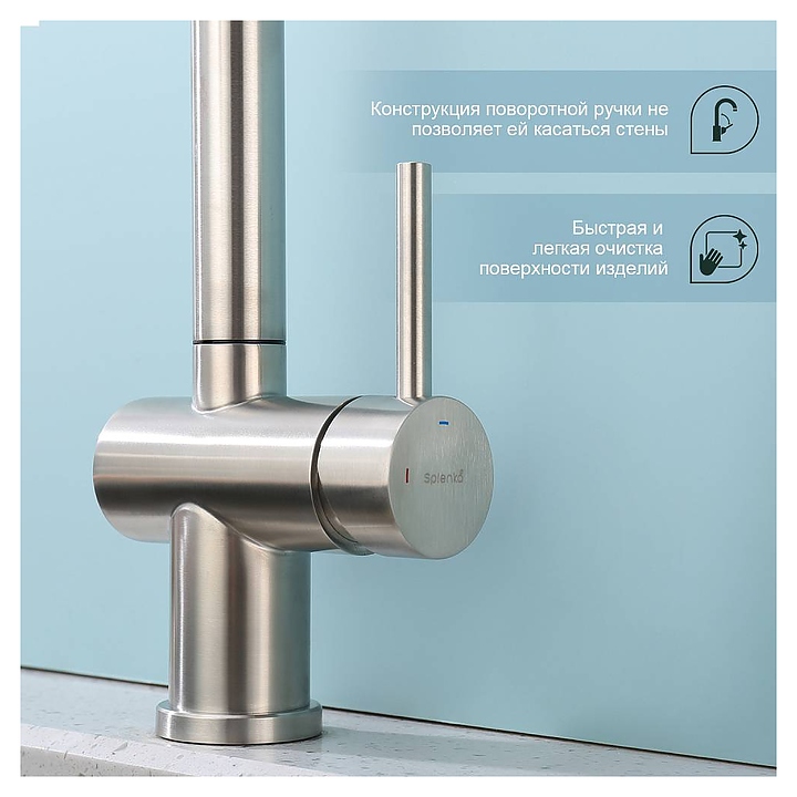 Смеситель Splenka S204.49.05 предназначен для подачи горячей и холодной воды в кухонных помещениях. Модель оснащена выдвижным изливом и керамическим картриджем, обеспечивающим плавный ход рычага смесителя, контроль и точность при выборе напора и температуры воды. Аэратор создает мягкую струю без брызг и снижает шум. Изделие выполнено из нержавеющей стали, которая отличается прочностью и долговечностью. В комплект поставки входят подводка и крепления. Особенности: