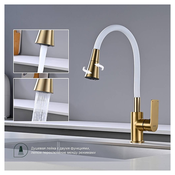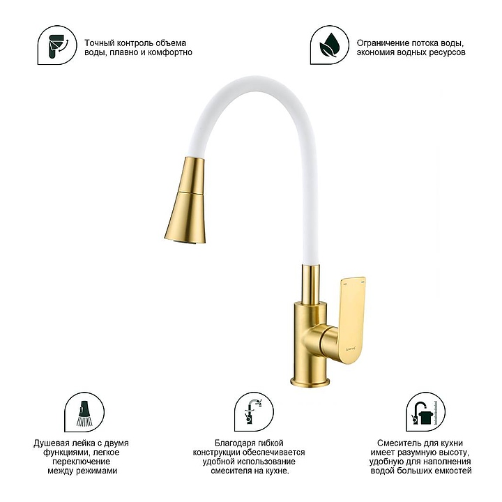 Смеситель Splenka S05.43.03 предназначен для подачи горячей и холодной воды в кухонных помещениях. Модель оснащена гибким изливом и керамическим картриджем, обеспечивающим плавный ход рычага смесителя, контроль и точность при выборе напора и температуры воды. Аэратор создает мягкую струю без брызг и снижает шум. Изделие выполнено из латуни, которая отличается прочностью и долговечностью, излив - из силикона. В комплект поставки входят подводка и крепления. Особенности: